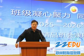 郑州市第一〇六高级中学校长胡庆周对本次班会课给予充分肯定和高度赞誉。他表示,两节班会课形式各具特色、主题鲜明突出、设计条理清晰、学生参与充分,高质量达成既定教学目标,展现了精品班会课的示范价值。胡校长也对全体班主任提出殷切希望,他着重强调“五项全能”是班主任的基本功,希望班主任重视对日常工作的梳理与总结,将宝贵的带班故事与育人经验转化为可展示、可推广的育人实践成果。他鼓励大家在专业上持续精进,共同促进学校德育工作迈向更高水平。