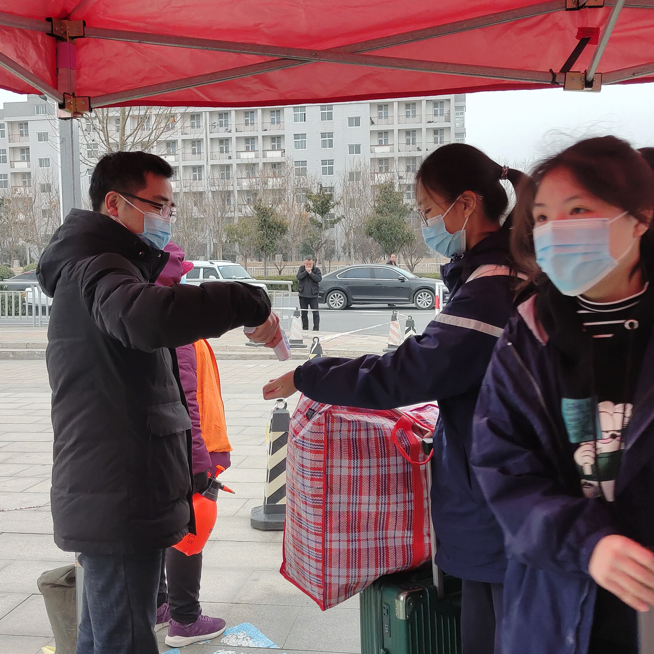 副校长王宏亮深入学生返校一线,检查指导学生返校报到工作。防护装备齐全的医务人员,学校领导、班主任老师以及学生干部准时到岗、各司其职,为高二学生安全返校保驾护航。学生们佩戴口罩,在工作人员的指引下,完成了体温检测、物品消杀、健康码核验等程序后有序进入校园,整个流程有条不紊、井然有序。返校后根据上级部门要求统一对师生进行核酸检测。