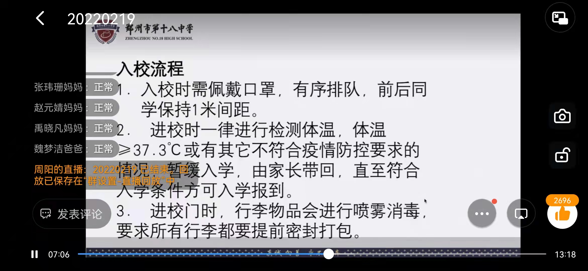为了保障学生返校规范、有序进行,2月19日19:00,郑州18中高一、高三年级召开了迎接新学期线上家长会。