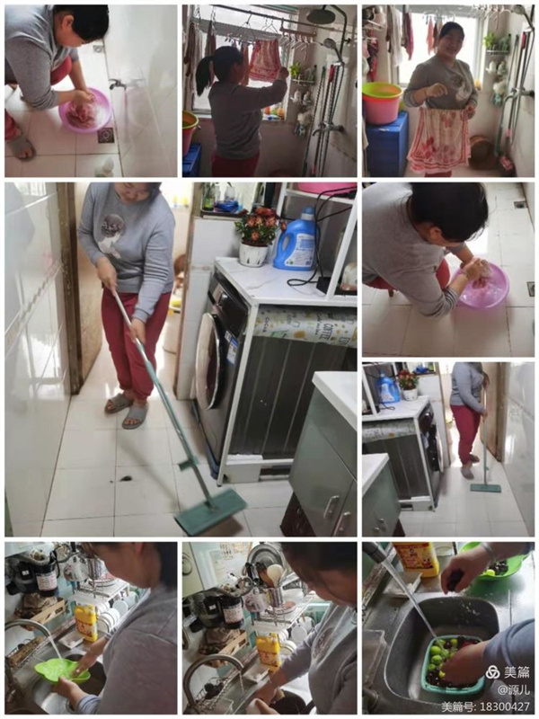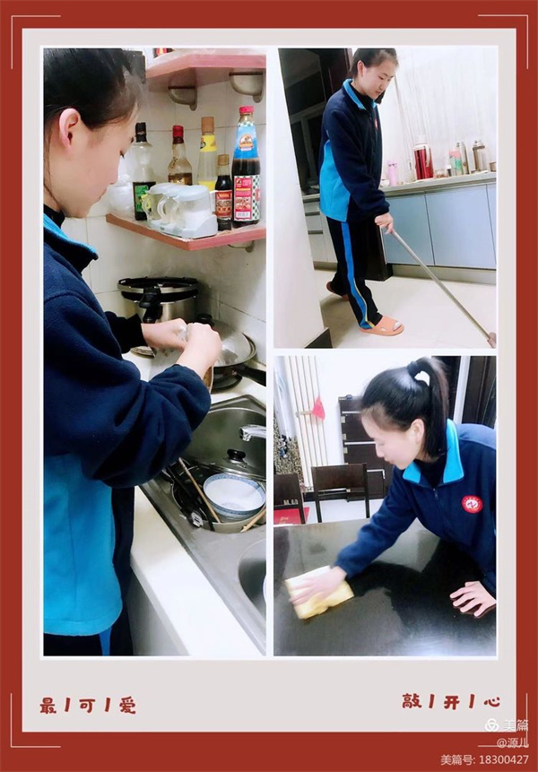 学会做家务是每个孩子的必修课。八九班的班主任在这个假期就为学生布置了家务劳动实践作业。同学们有的主动打扫卫生为父母分担家务,有的化身大厨,煎炒烹炸,为家人献上一道道爱心佳肴,既锻炼了自理能力,又培养了同学们对家庭和社会的责任感。