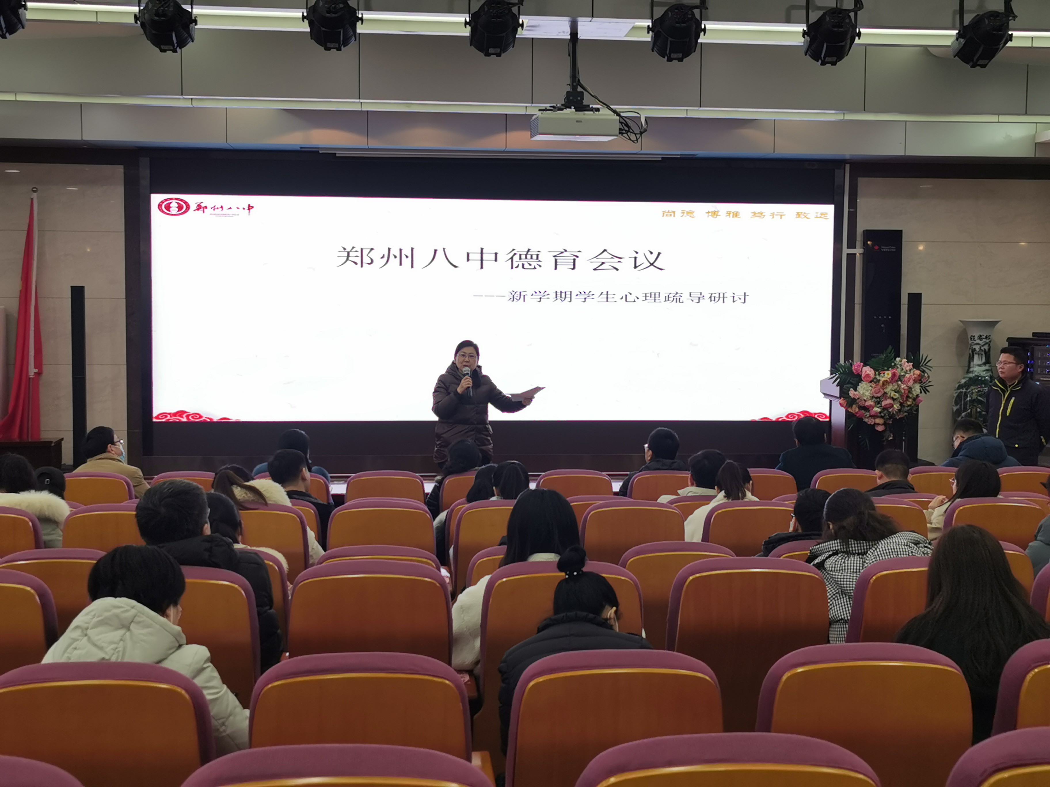 之后,郑州八中副校长刘莘又做了“新学期如何重视学生心理疏导工作”的安排和部署。她结合落实双减精神,分析教育现状,特别表示,学生心理疏导工作的开展和实施必须踏踏实实地做,班主任一定要多关注自己班级中有各种各样家庭问题和自身健康问题的学生,建立帮扶档案,实行教师、班干部一对一的帮扶,让在郑州八中的孩子都能幸福快乐的成长。