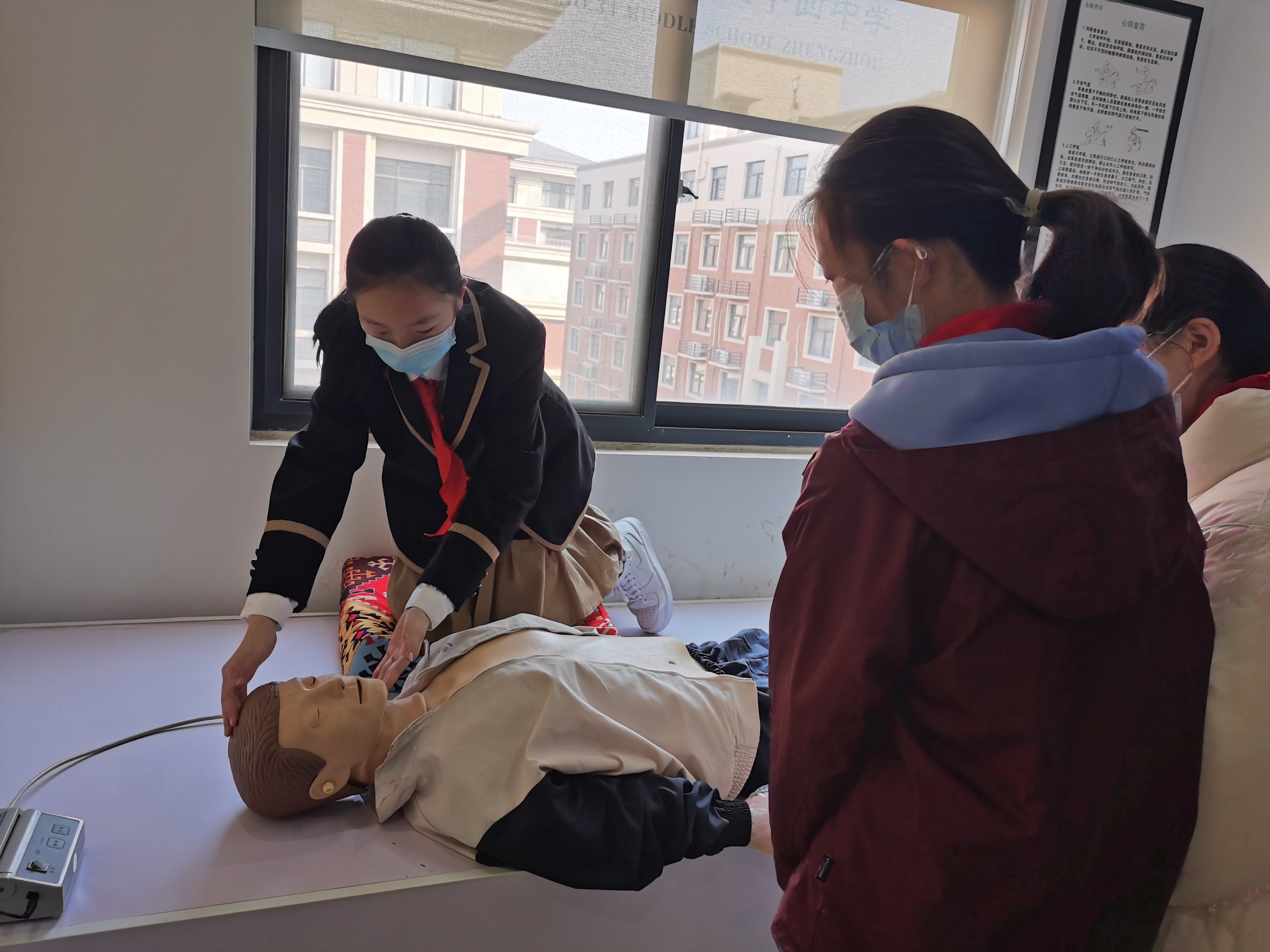 郑州34中学生志愿者李雨洋进行心肺复苏演示