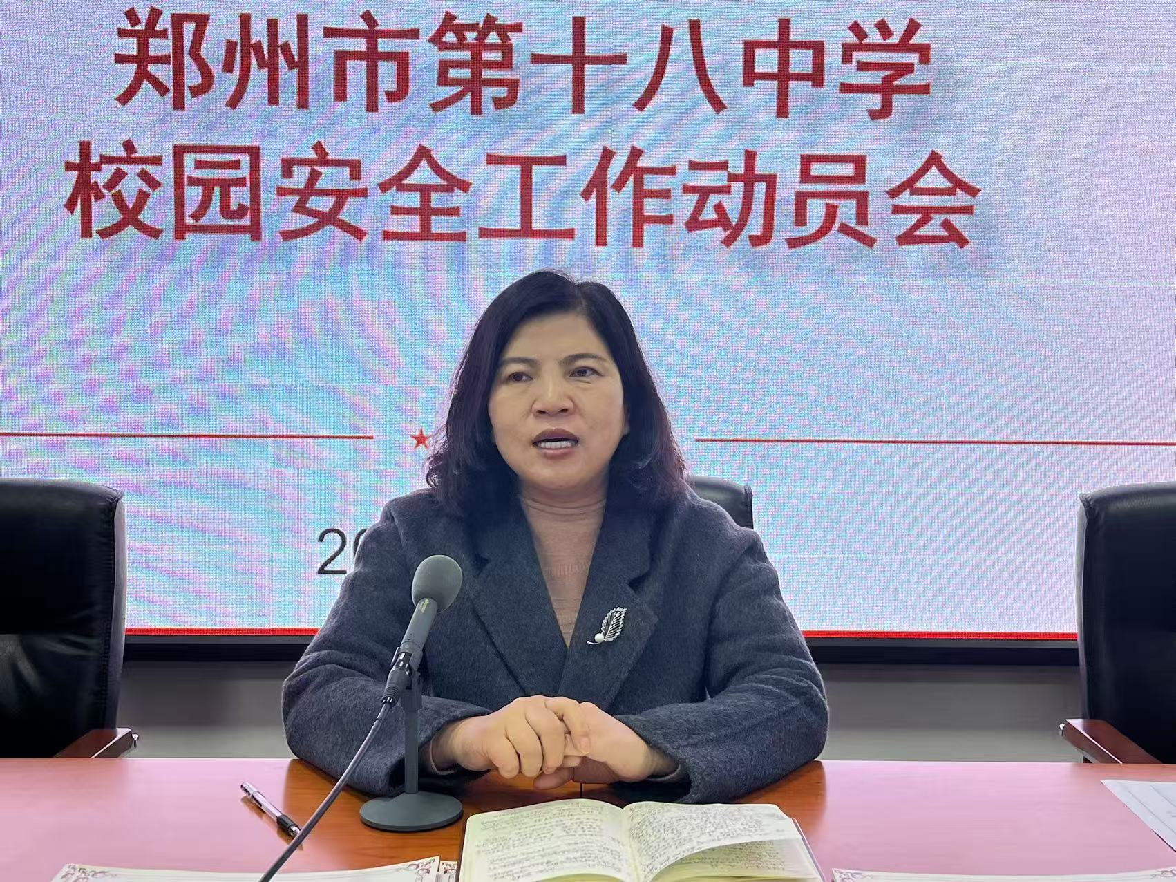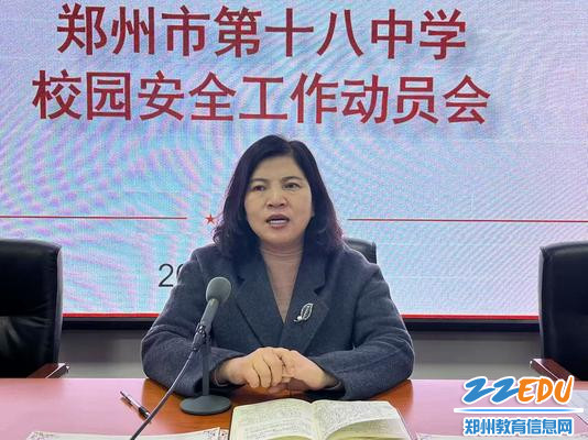 郑州市第十八中学党委书记段亚萍在教职工第一次例会中讲校园安全工作