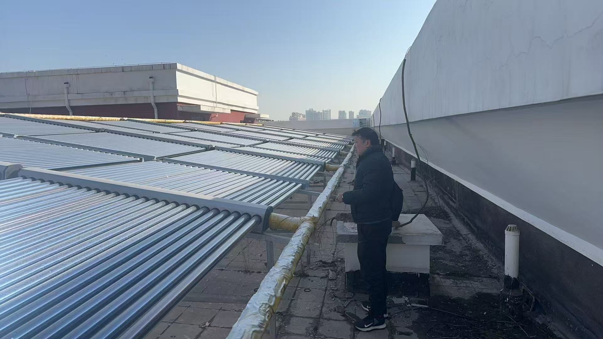 宿舍楼顶太阳能热水设备检查