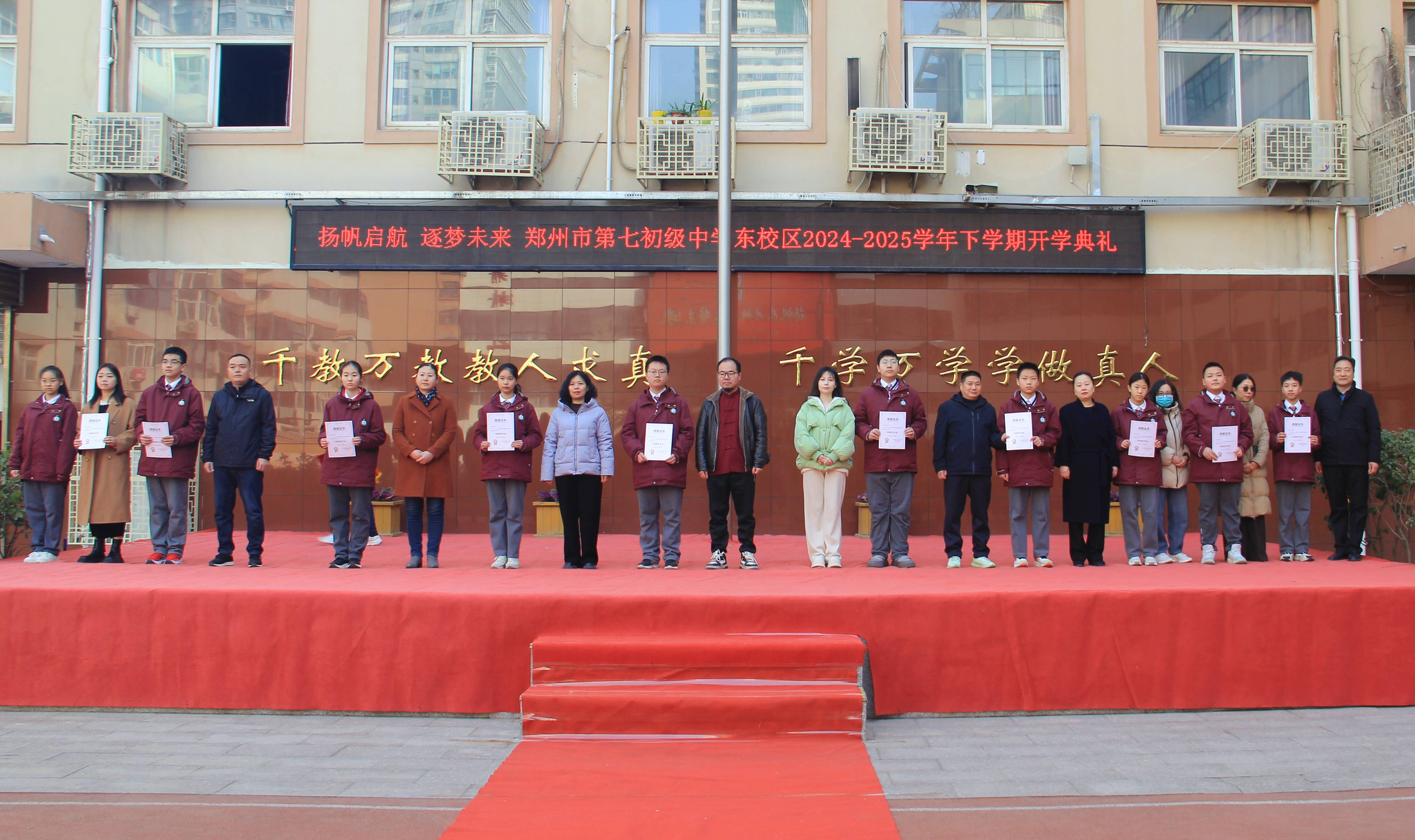 新学肇始,万象更新。莘莘学子,洋溢蓬勃青春,菁菁鸿鹄,再起华章新程。2025年2月17日上午,郑州市第七初级中学东校区全体师生与各位家长代表齐聚校园操场,以一场充满希望与激情的开学典礼,共同开启新学期的征程。本次典礼以“扬帆起航 逐梦未来”为主题,寄语全体师生以奋斗为桨、以理想为帆,在知识的海洋中乘风破浪,书写青春华章。