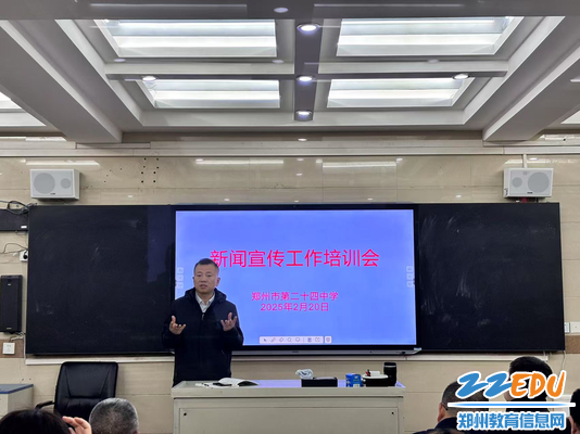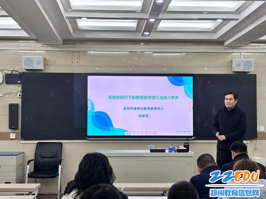 郑州市信息化教育教学中心新闻宣传部副主任孙宏伟为郑州24中通讯员做新闻宣传培训