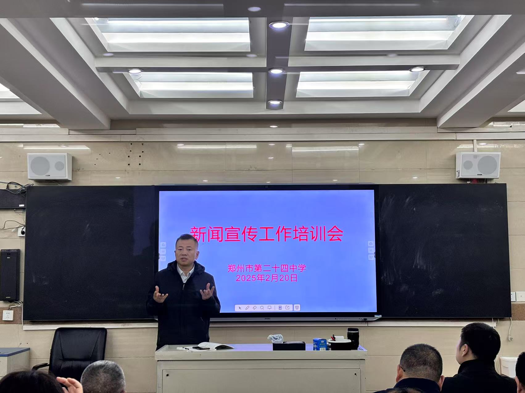 最后,郑州24中校长郭鹏再次强调了新闻宣传是学校工作的前阵脚,是家长、学生了解学校的一块重要展板,鼓励全体通讯员在新技术的支持下,不断提升写作水平与专业素养,确保学校的新闻宣传工作精准高效,推动学校形象与发展迈上新台阶。