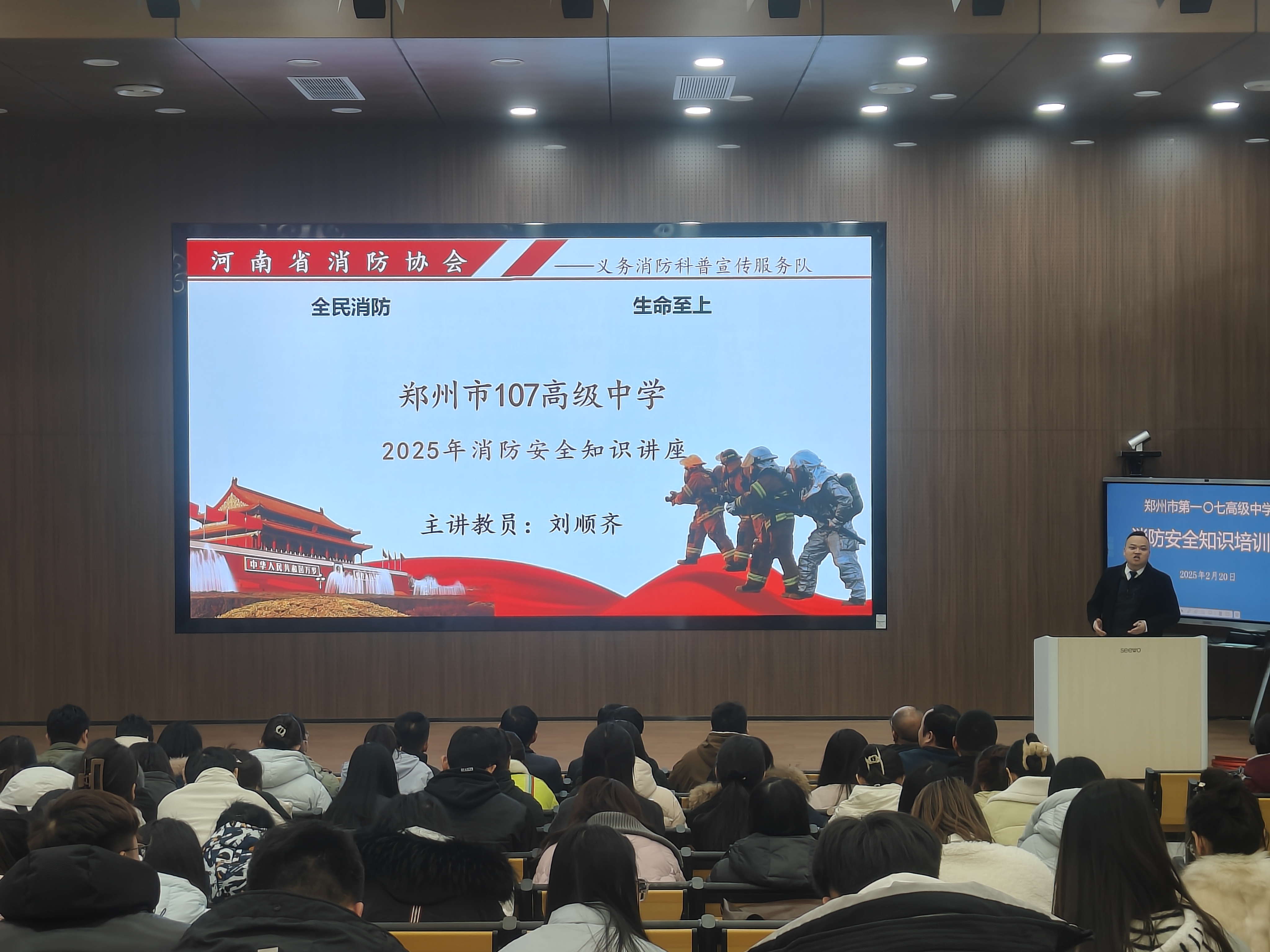 为进一步夯实校园安全防线,强化全员责任意识,2月20日下午,郑州市第一〇七高级中学在学校学术报告厅召开校园安全专题会议,围绕反恐防暴、安全形势分析及消防安全三大主题展开培训与部署,学校领导班子及全体教职工参加会议。