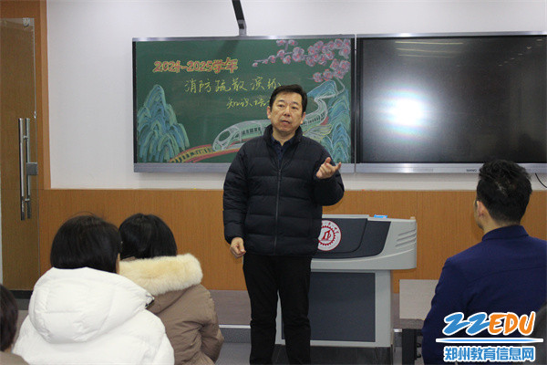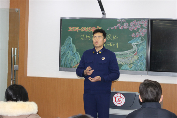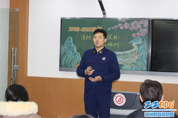 此外,为提高火灾逃生水平,保障演练质量,学校还特别邀请了郑州市消防救援支队郑东新区消防大队宣传员、河南消防宣传之星党龙伟教官全程参与进行专业指导。他充分肯定了演练过程中师生们反应迅速、撤离有序,同时也指出了个别班级在疏散过程中存在的问题,并提出改进建议。演练结束后,党龙伟教官还为师生们进行了消防知识培训,他通过生动的案例和现场演示,向师生们详细讲解了火灾逃生时的应对措施。