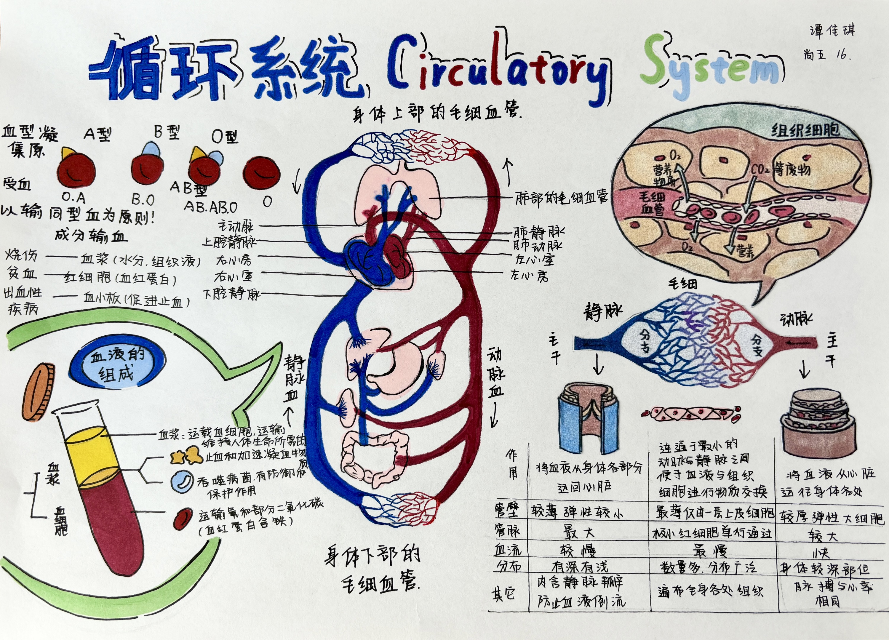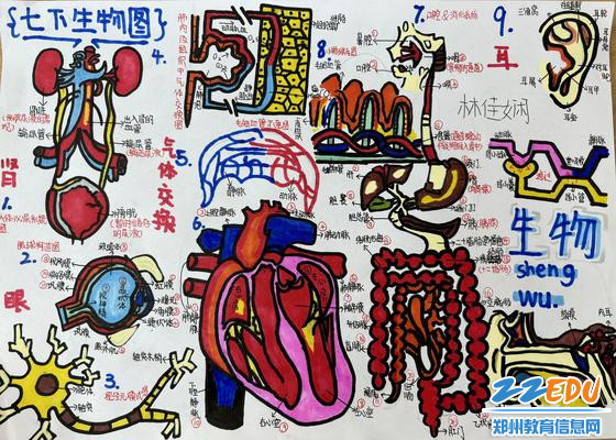 “孩子们的智慧在他们的指尖上。”同学们运用严谨的思维,灵动的画笔,汇出了各结构之间存在的密切联系,充分体现了“人体是一个统一的整体”;用五彩斑斓的色彩,纵横交错的线条勾画出生命之美,每一条神经每一根血管,惟妙惟肖栩栩如生的展示在画纸上,绽放了生命的色彩。