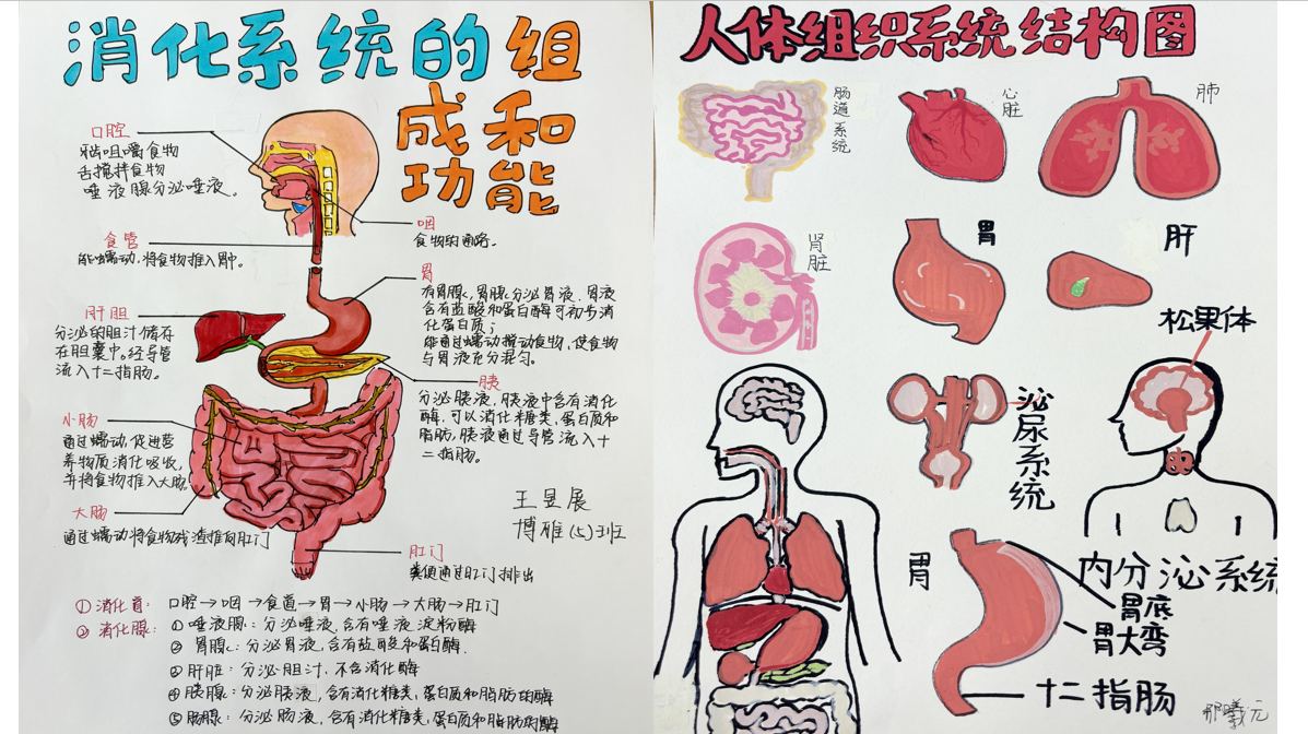 同学们通过学习,收获颇丰:了解了骨骼、肌肉、神经、血管等组织和各个重要器官的结构与功能,以及它们构成的各种系统在生命活动中的作用,人体在健康和疾病状态下的本质规律;体会了生命的不易,母爱的伟大;强化了尊重生命、热爱生命、敬畏生命、健康生活的观念。甚至,有同学查阅了相关科普知识,知晓了胆结石、肾结石、手机脖、牙周病等疾病与饮食和生活作息之间的关系。
