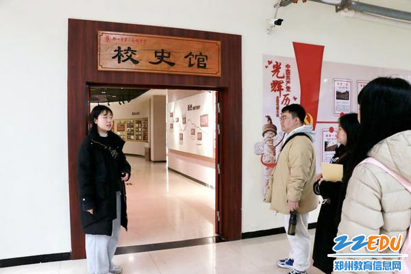 郑州市第二高级中学教务处教师李嘉杰带领实习教师们参观校史馆