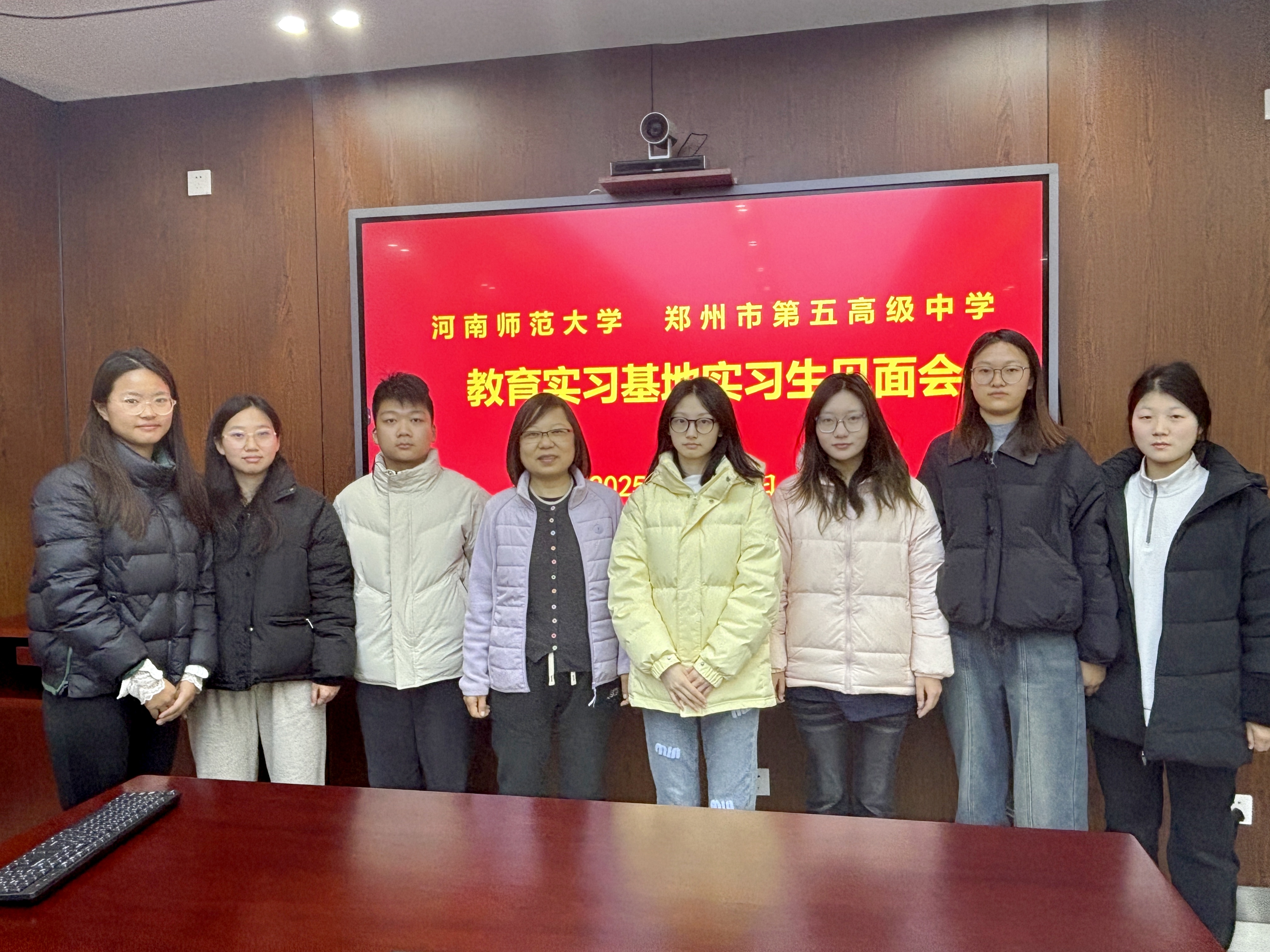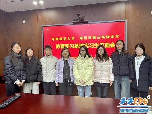 郑州市第五高级中学教师发展处主任刘玲玲与实习教师们合影