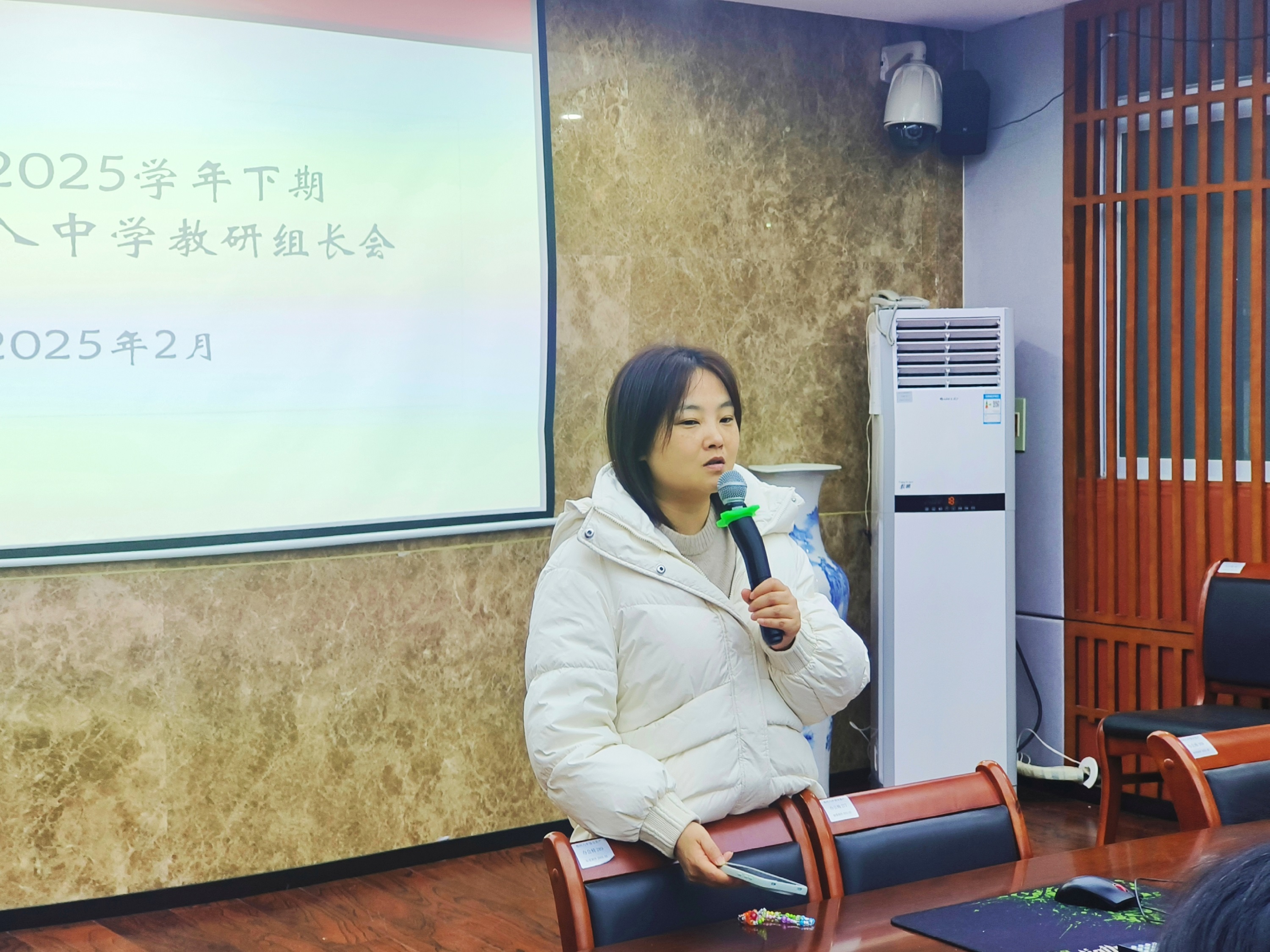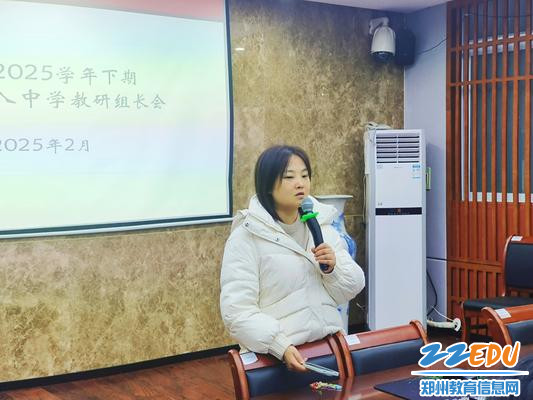 会议伊始,郑州八中教务处副主任霍冬冬对上学期的教学工作进行全面、深入的复盘与审视,系统梳理了教研组各项工作的开展情况,充分肯定了教研组长在教学研究中所展现出的关键作用。他表示,新学期要以加强常规教研、推进三人磨课、探索科学教育为抓手提升学校教师的业务能力,促进教师队伍专业化成长,此外要求教研组长要凝聚团队智慧,积极承接省市区内各项教研活动并做好充分准备。