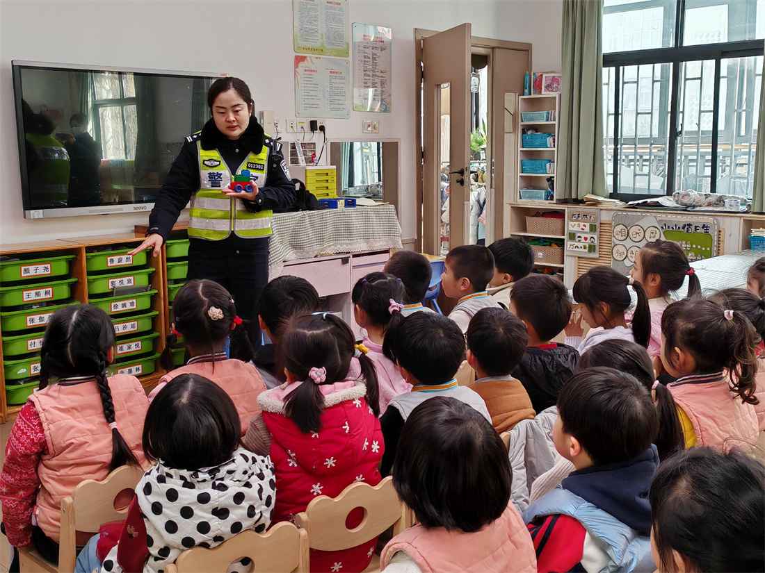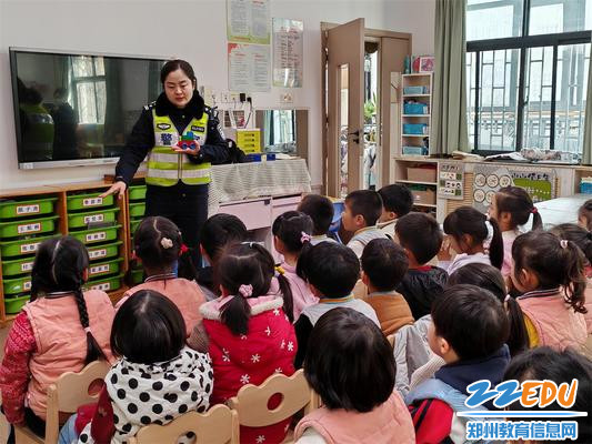 随后,作为郑州市实验幼儿园法治副园长的李慧,走进班级为小朋友们开展了一场生动有趣且意义非凡的安全教育活动,内容涵盖交通安全、防拐骗等多个领域,为孩子们的健康成长筑牢安全防线。她利用可爱的卡通模型,向孩子们详细讲解了基本的交通规则以及遇到“暴恐人员”开车冲撞行人时应当如何避险。同时,她还通过情景模拟的方式,让孩子们亲身体验可能遇到的危险场景,提升孩子的防拐骗意识。孩子们瞪着好奇的大眼睛,聚精会神地听着,积极举手回答问题,现场气氛十分活跃。