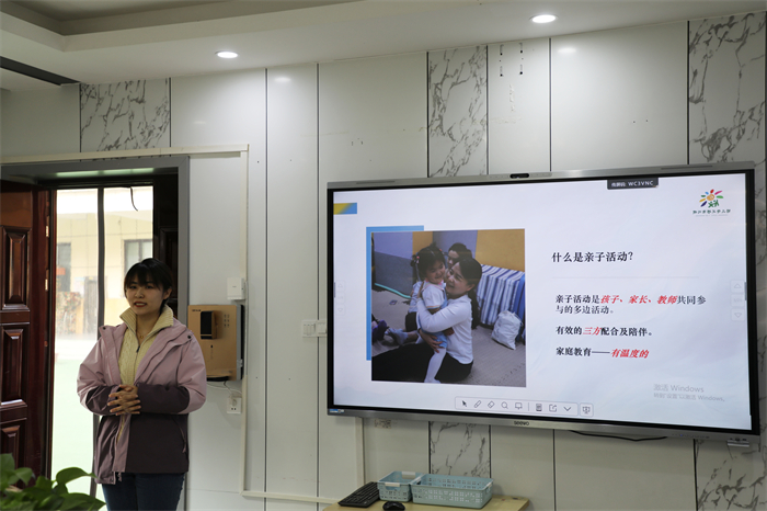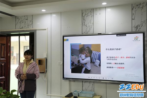 郑州市教工幼儿园亲子部教师王丹向家长讲解亲子课须知