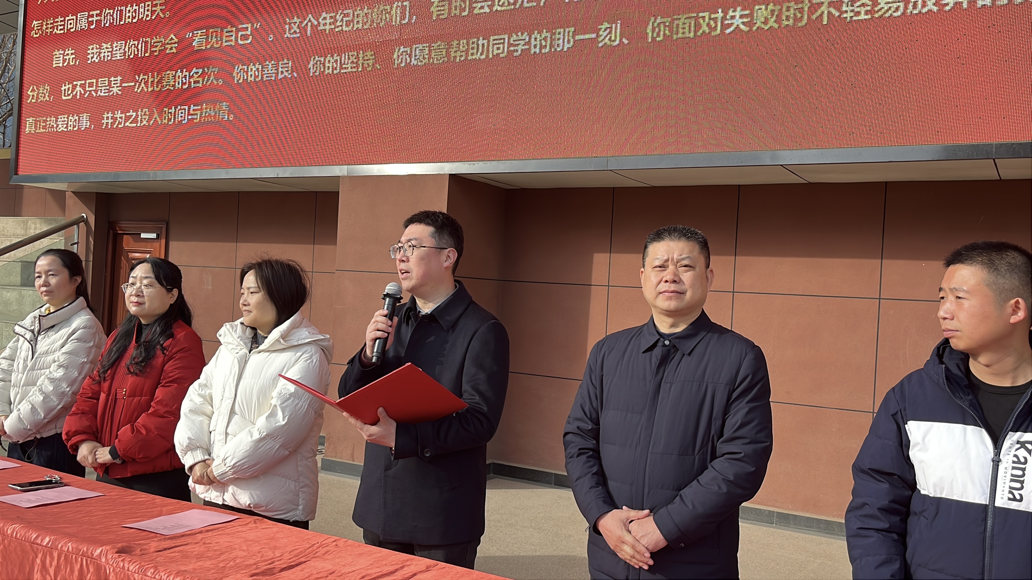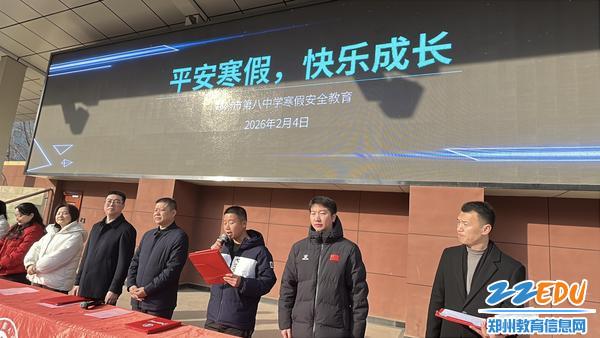 2月4日上午,郑州八中2025—2026学年上学期散学典礼在校园内温情启幕。本次散学典礼由郑州八中政教处主任黄晓杰主持,以“根文化”教育思想为内核,将庄重仪式与成长感悟深度融合,为充实的学期时光画上圆满句点,也为假期成长锚定坚实方向。