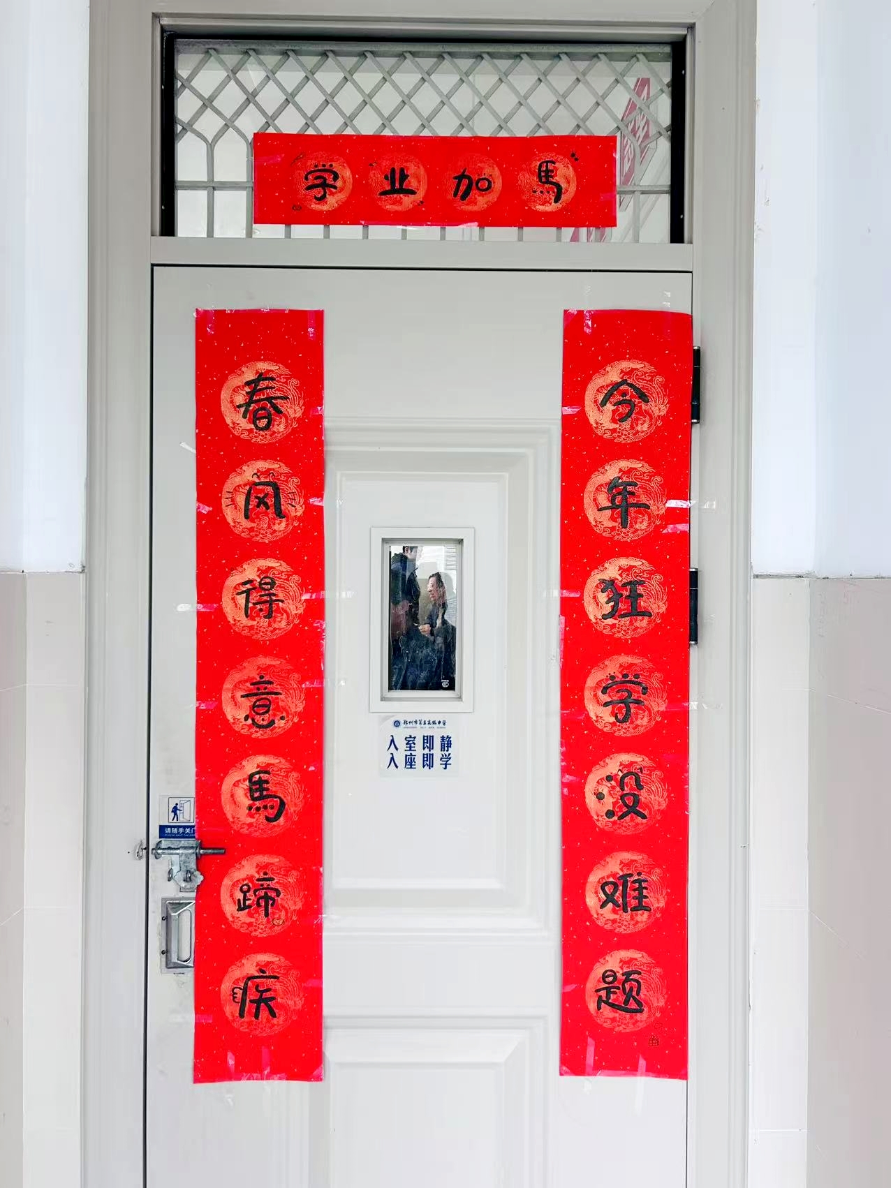 学子们在班级门口张贴的春联