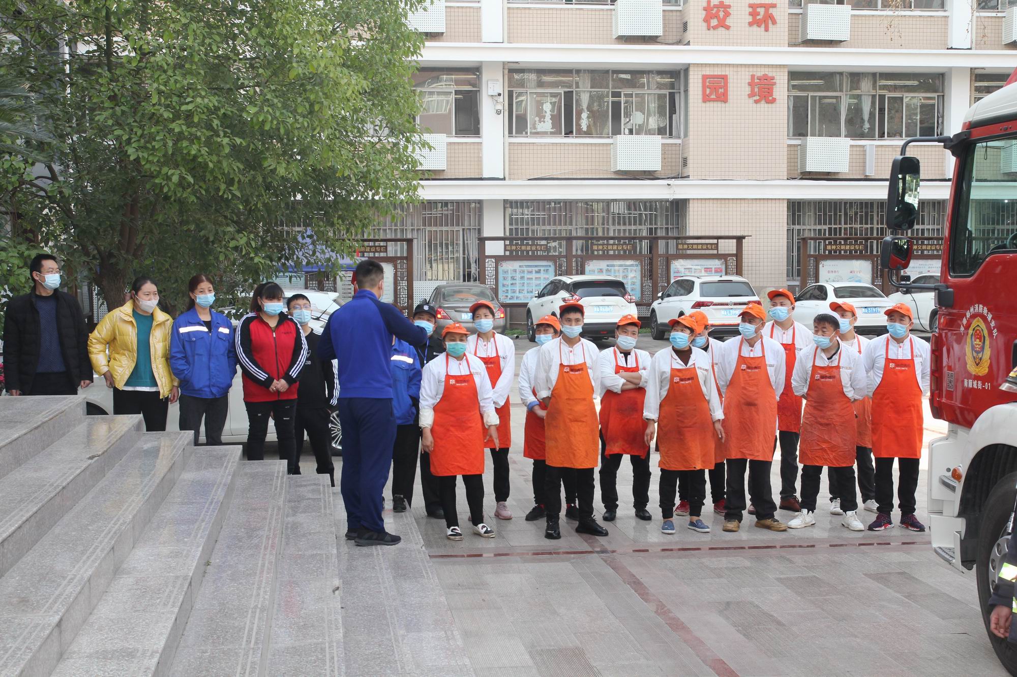 最后,南顺城街消防站负责人,现场对郑州市第五高级中学门卫保安人员、食堂餐饮人员和寝室保洁员及部分师生班主任等进行了灭火器的使用方法等消防灭火培训。