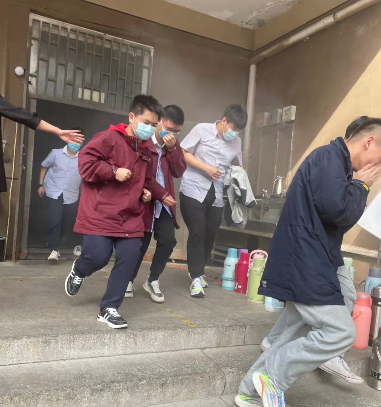上午10:00,随着警报声的响起,全体师生停下一切活动,按照学校制定的演练活动方案,及时、迅速地进入“逃生”状态。安全组指挥员迅速到位,在教学楼各楼层负责疏散。各班班主任立即组织学生有序疏散撤离,避免人群拥堵。副班主任们准时到达各个楼层拐角处,提醒学生在疏散时掩住口鼻,防止人体吸入烟雾和有害气体。学生们捂住鼻子和嘴巴,弯着腰,按疏散路线有秩序地迅速撤离,到达指定地点汇合。整个逃生过程当中,学生基本做到在烟雾笼罩的环境中快速行走,先到先下,无强行冲、挤行为,动作迅速,不吵闹,不慌乱。学生到达各班指定地点后,班长们立即清点人数并向安全员汇报结果,整个过程紧张而高效,迅速而有序。