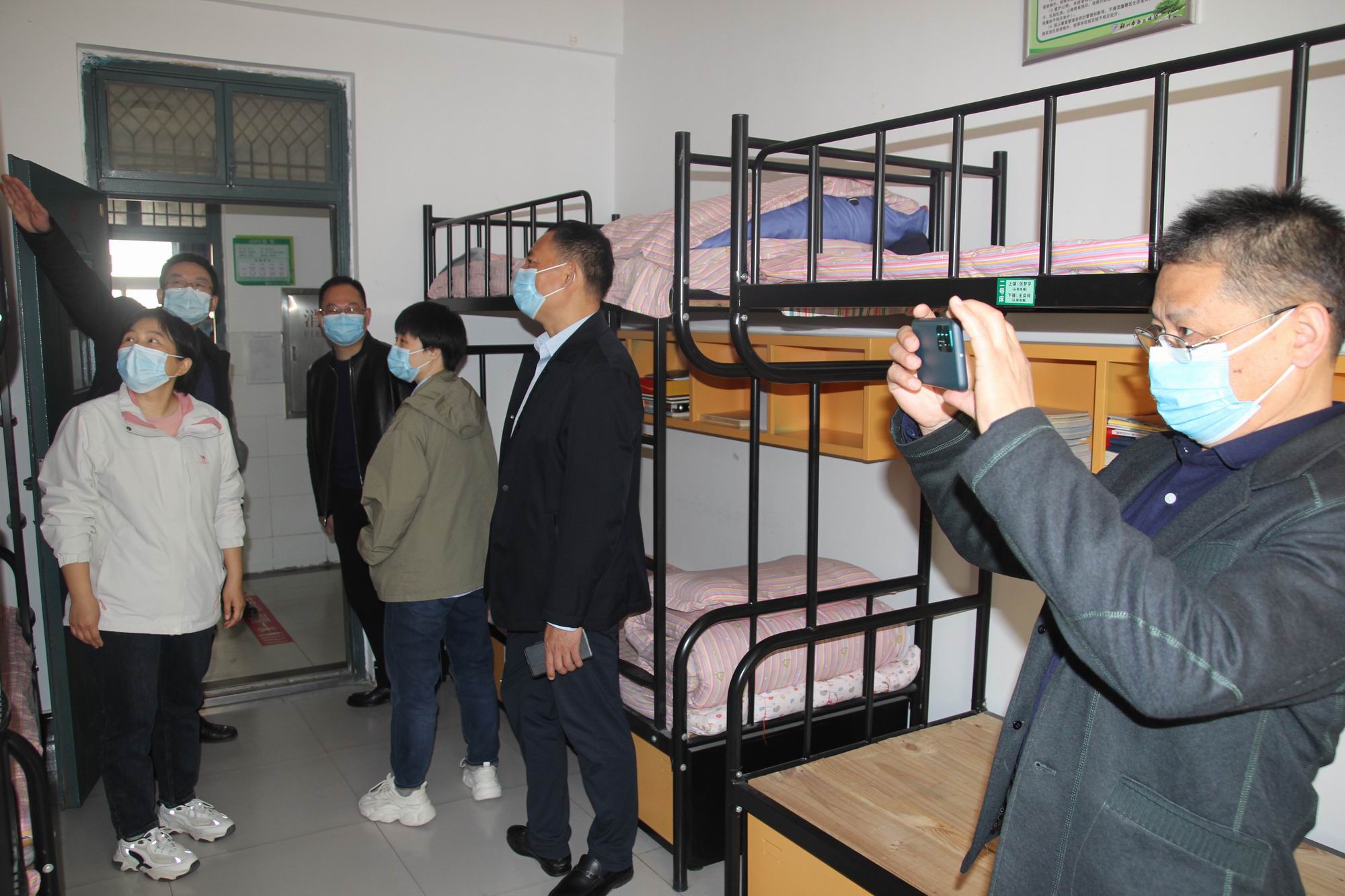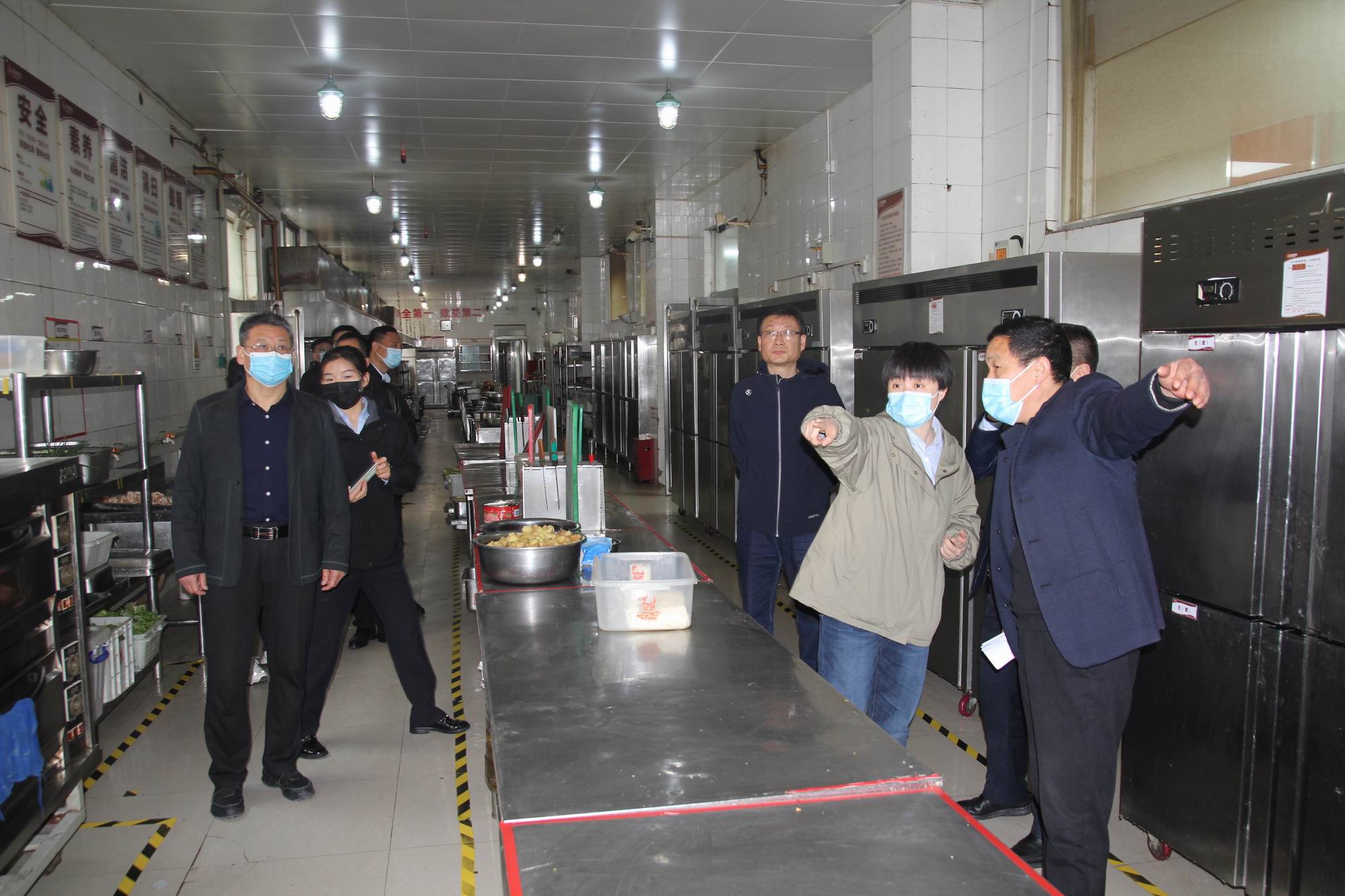 纪委书记王磊等校领导陪同检查组查看学生食堂后厨卫生