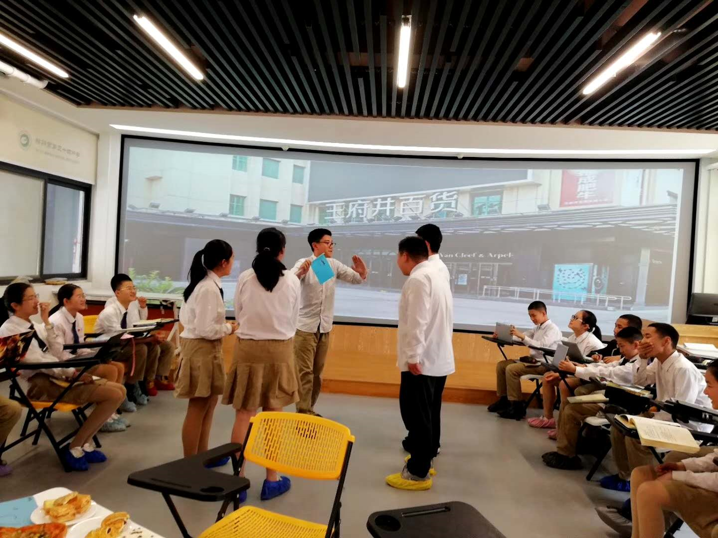 据悉,情境教学是郑州34中英语学科重点建设的学科特色教学之一。英语组全体教师集体教研、观评课、国际理解教育展演等研究和实践,将初中三个年级6个学期的学习内容,整合成12个主题情境话题。采用“任务驱动教学法”,以问题为导向,基于现实世界引导学生通过小组合作的形式,收集资料、发现问题、解决问题,培养学生自主学习能力和创新能力。