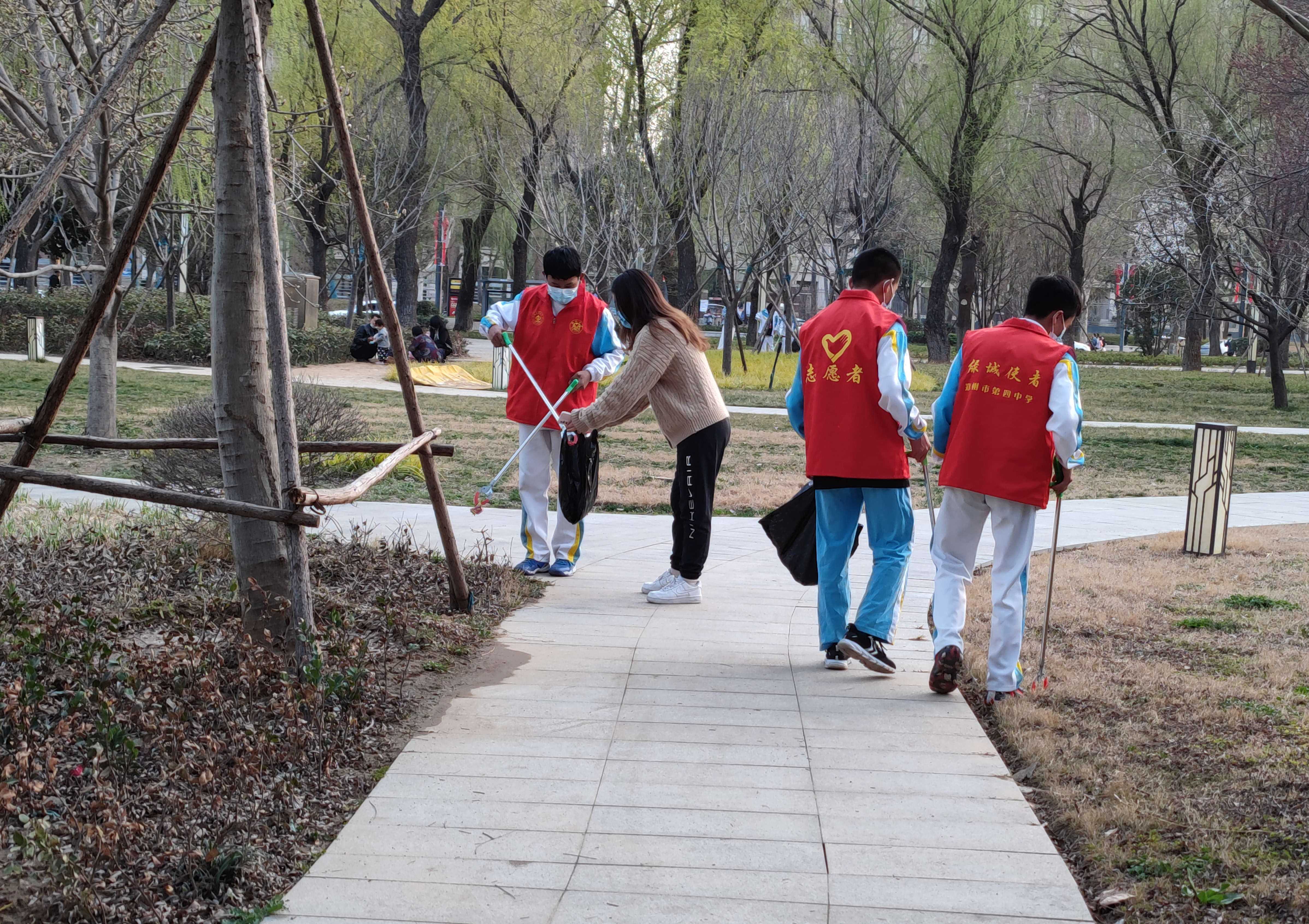 正值“雷锋月”,为积极响应郑州市团委“万名团员进社区”的号召,引领广大学生在实践中坚定理想信念,践行雷锋精神,营造学雷锋志愿服务的浓厚社会氛围。3月10日下午,郑州市第四高级中学青年志愿者社的学生们到惠济区古树苑公园开展“清洁家园”志愿服务活动。