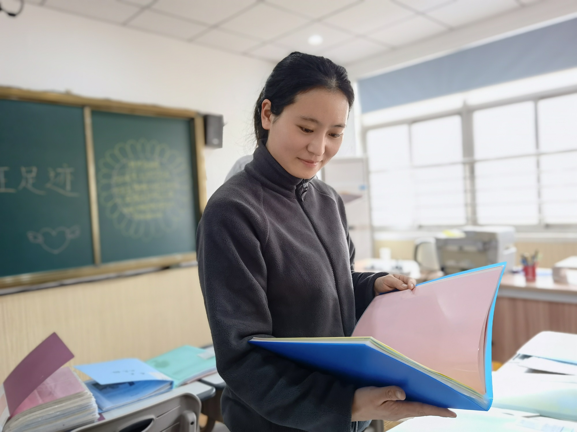班主任老师们翻看着孩子们的成长记录袋,了解孩子们的课外生活和父母寄语。年级长姚向伟老师幸福满满地说:“优秀成长记录袋留下了孩子们认真努力的足迹,记录了学习生活的点滴,呈现了学校丰富多彩的活动,折射了成长道路上父母、师长和同学们给予的陪伴、鼓励与支持。”