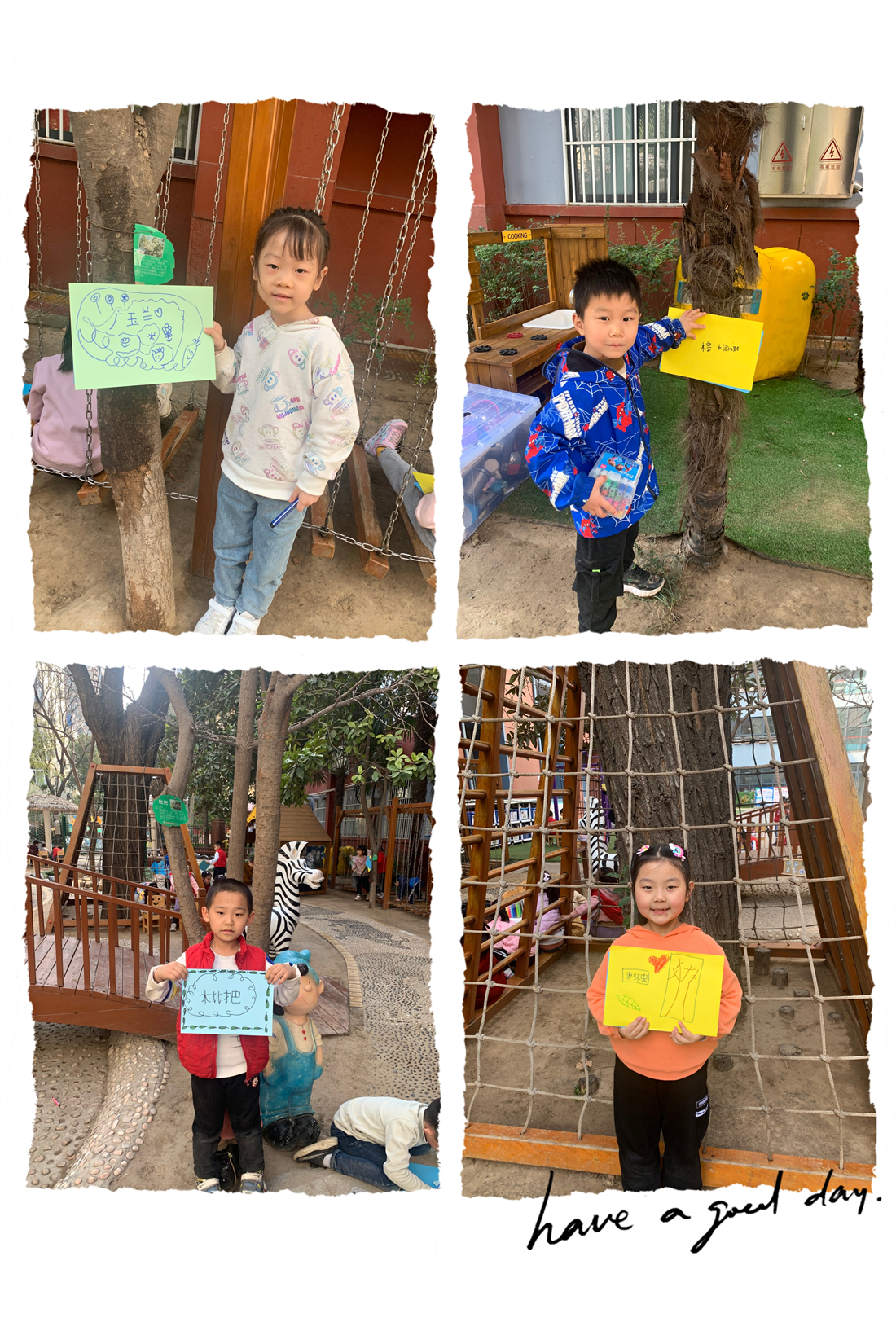 大班幼儿为树木悬挂”专属名片“