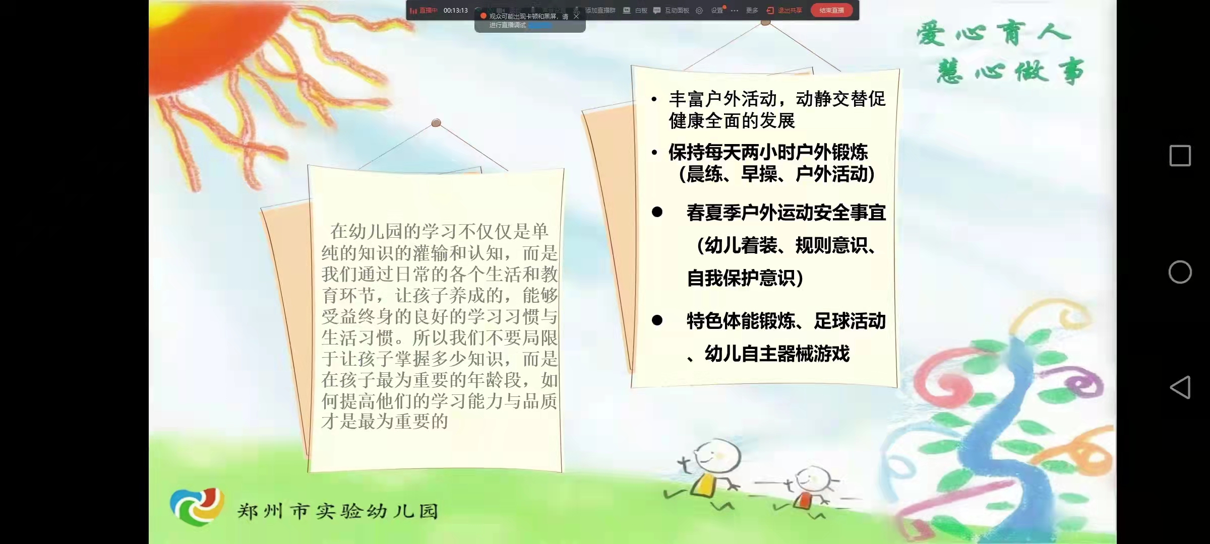 虽然是线上家长会,家长对于本次家长会的重视程度丝毫不减,直播间刚刚开启,家长们就积极地进行钉钉签到。会议开始后,班主任结合课件,总结了幼儿上一学期的发展情况,对本学期班级重点工作以及计划开展的主题活动进行了详细讲解。家长们认真倾听会议内容并与老师互动交流。