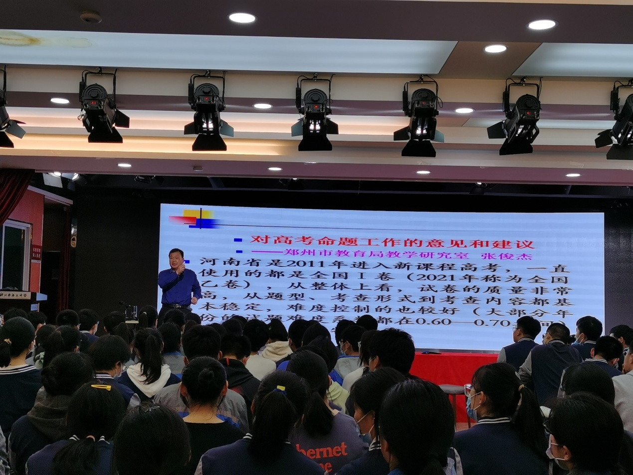 在距离高考不足100天之际,为了给高三学子的复习备考助力指向,应郑州市第五高级中学邀请,郑州市教育局教研室生物教研员、命题专家张俊杰老师,在该校艺术多功能报告厅为学生们带来了一场精彩纷呈的讲座,为郑州市第五高级中学高三师生的生物学科复习备考指点迷津,指明方向。