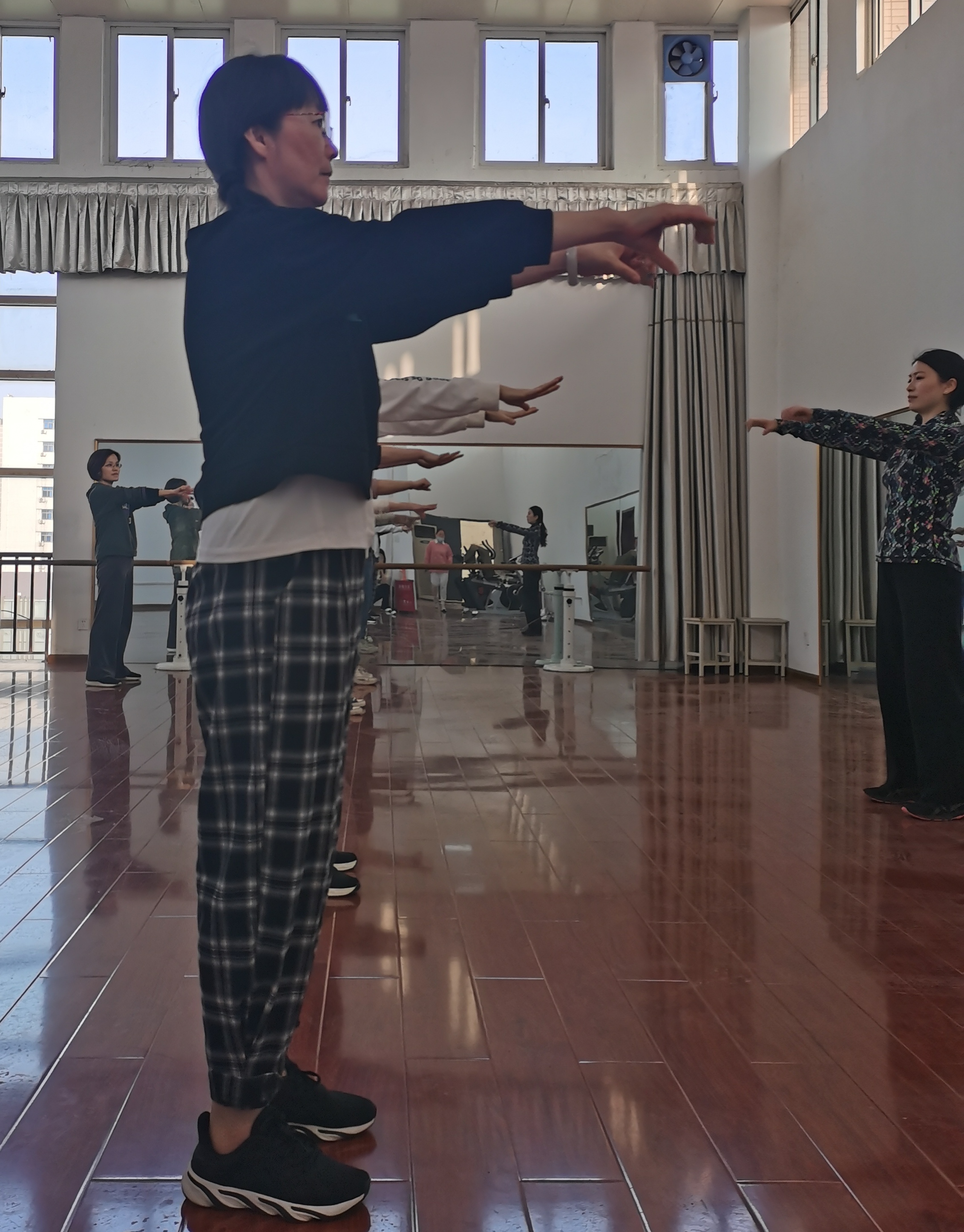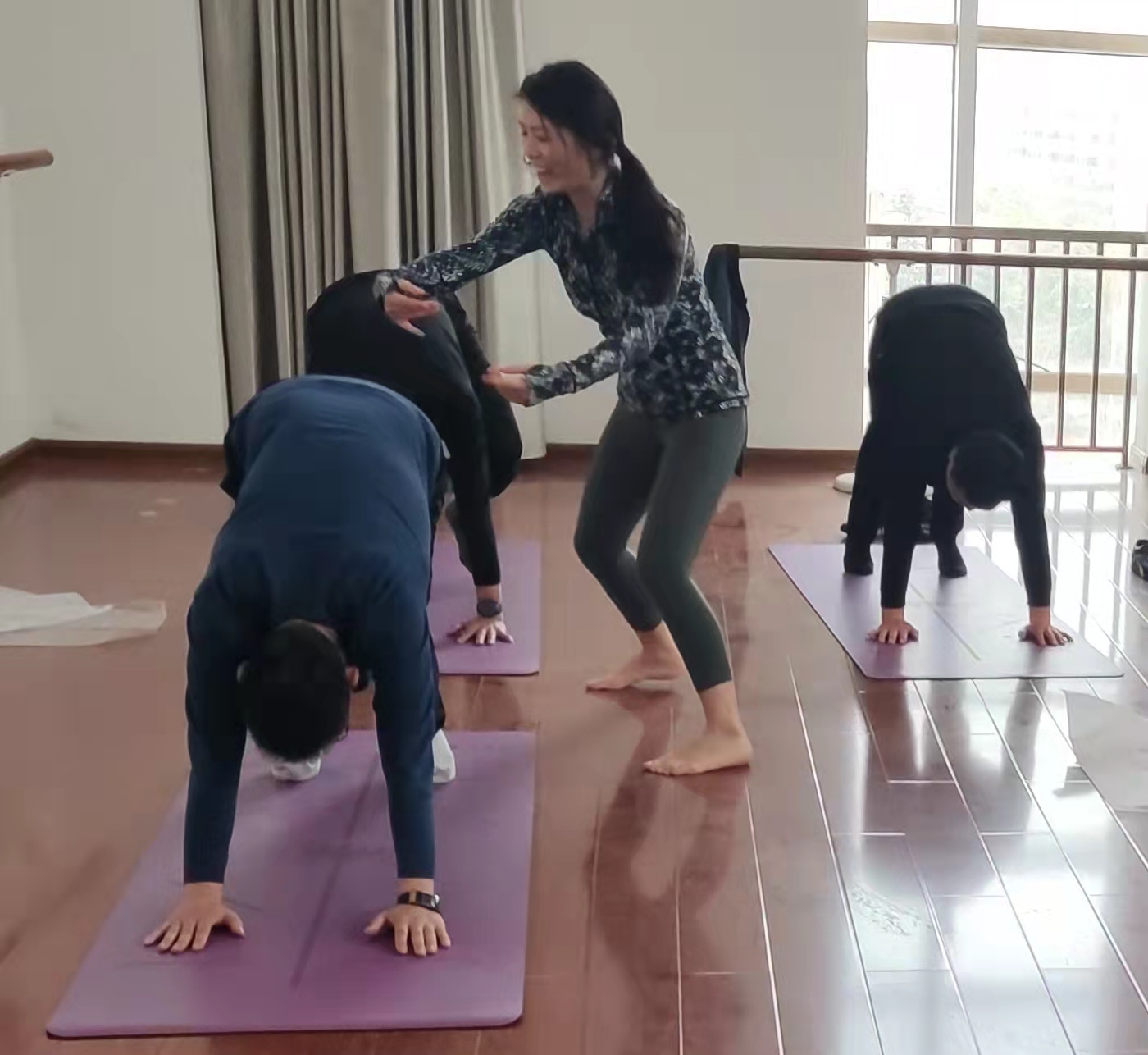 课上,瑜伽老师认真教学,根据教师的实际状况及时调整强度,并一对一指导纠正每位教师的动作,保证运动安全科学。教师们认真学习,跟随瑜伽教师做好每一个动作。刚开始训练,身体不可避免有一些酸痛,渐渐的,便会忘记酸痛,伴随着舒缓的音乐,瑜伽教师柔和的语调,教师们舒展自己的身体,同时也放松着自己的心灵。结束时,是身心舒泰的愉悦。