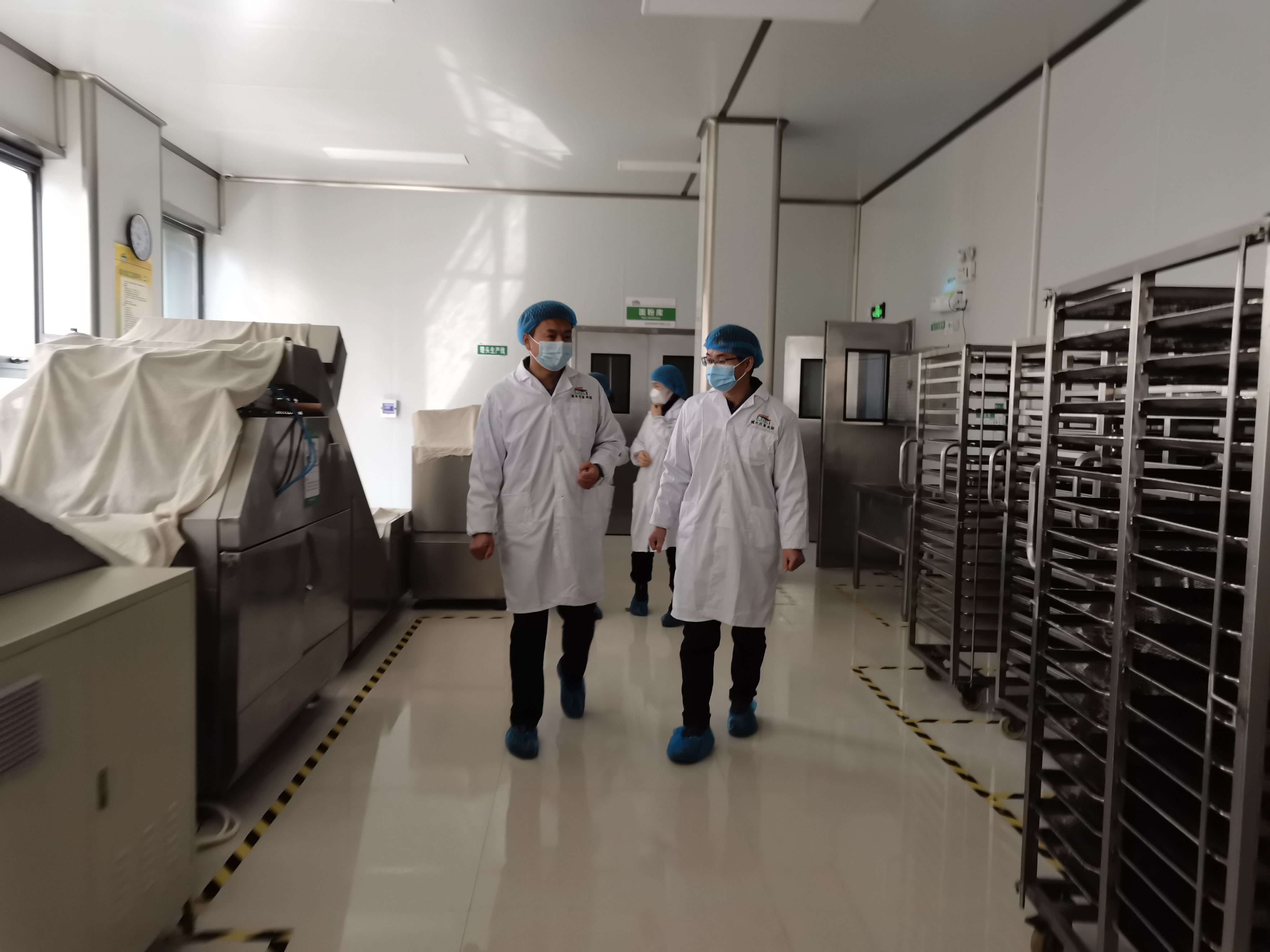 现场,配餐公司负责人向各位家长代表介绍公司发展情况,讲解食品采购、食品加工、食品运输等流程的规范操作和安全管理。随后,家长代表按照防疫和食品安全要求,到食品存储和加工现场进行实地观摩。在穿戴防护衣和消毒后进入食品存储房间,家长对食品的采购源头、保质期、品牌等家长关心的问题进行询问和查看,在食品加工区看到干净的环境卫生,整齐的加工设备,工人师傅穿戴整齐在各个岗位有条不紊的进行食品加工作业,家长代表对公司的卫生、设备和工人等情况整体表示满意。