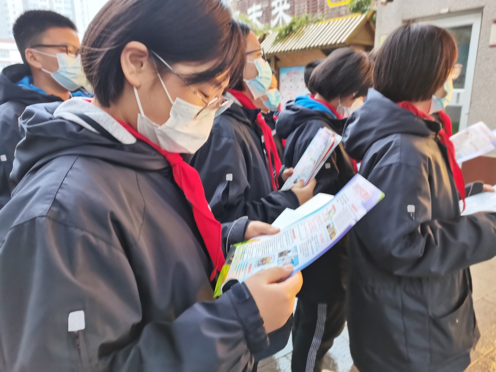 同学们学习宣传页上的交通知识