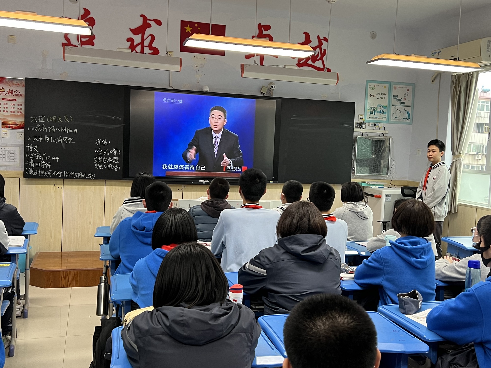 本次班会内容由2024届班主任集群智精心设计,各班班长主持,全体学生积极参与学习并交流分享感悟。会议伊始,学生们一齐观看由钱文忠教授讲解的《弟子规》之《入则孝》篇的内容,具体了解到“身有伤,贻亲忧;德有伤,贻亲羞”的内容与含义。古人认为“身体发肤,授之父母”是不容随意破坏的,学生在日常孝敬父母的时候,除了要对父母好,还要好好地爱护自己,做到身体健康,不从事不良行为。