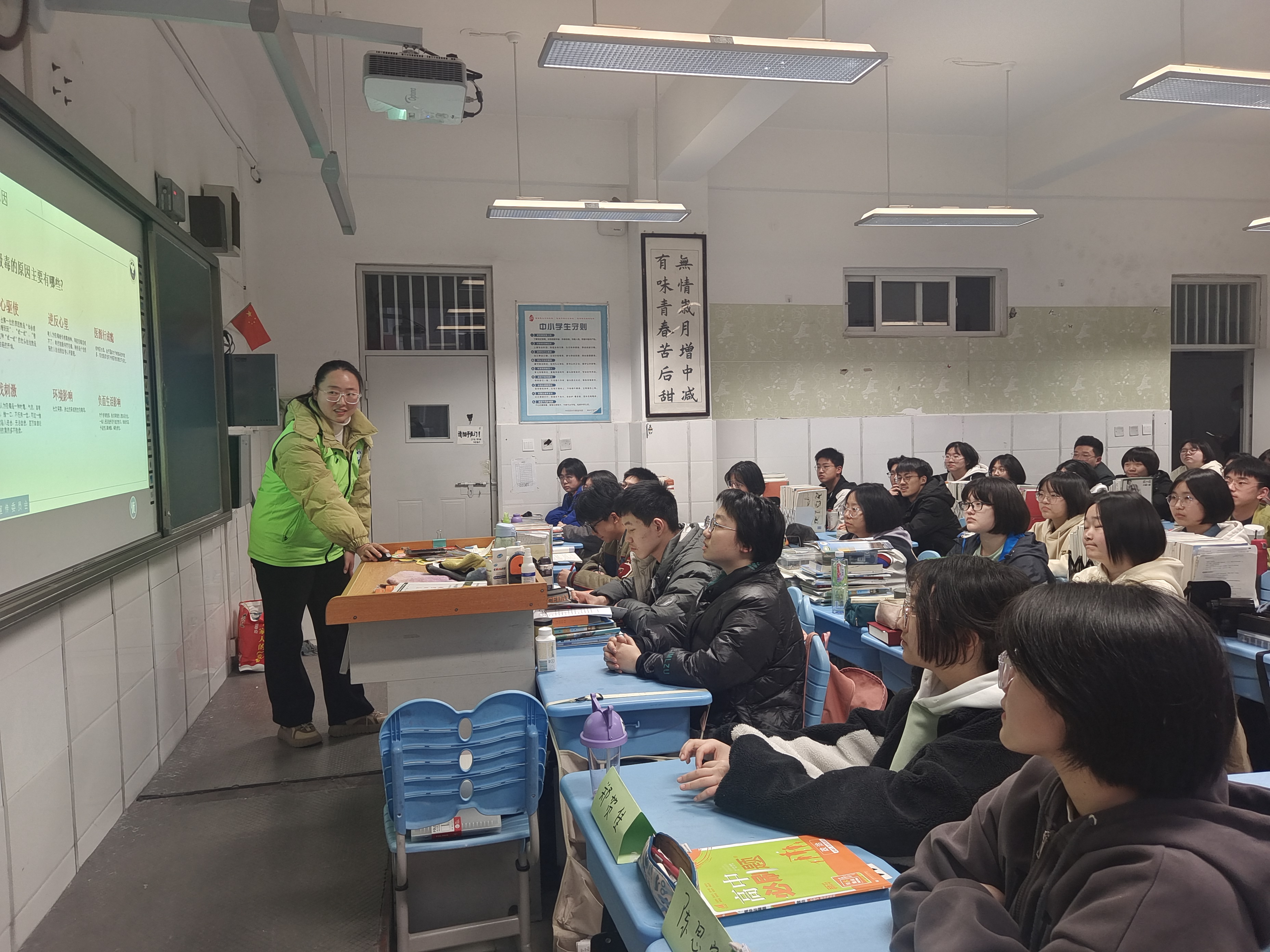 讲座期间,工作人员还通过展示毒品仿真模型向同学们介绍了新型毒品的迷惑性、欺骗性和危害性,特别是伪装成跳跳糖、奶茶的新型食品。告诫同学们不要轻易和陌生人搭讪,不要随意接受陌生人给予的东西。并教导同学们如何抵御和防范毒品的方式方法;如果在生活中发现这种情况,可以婉言拒绝、向家长或老师报告、拨打郑东新区禁毒举报电话等。