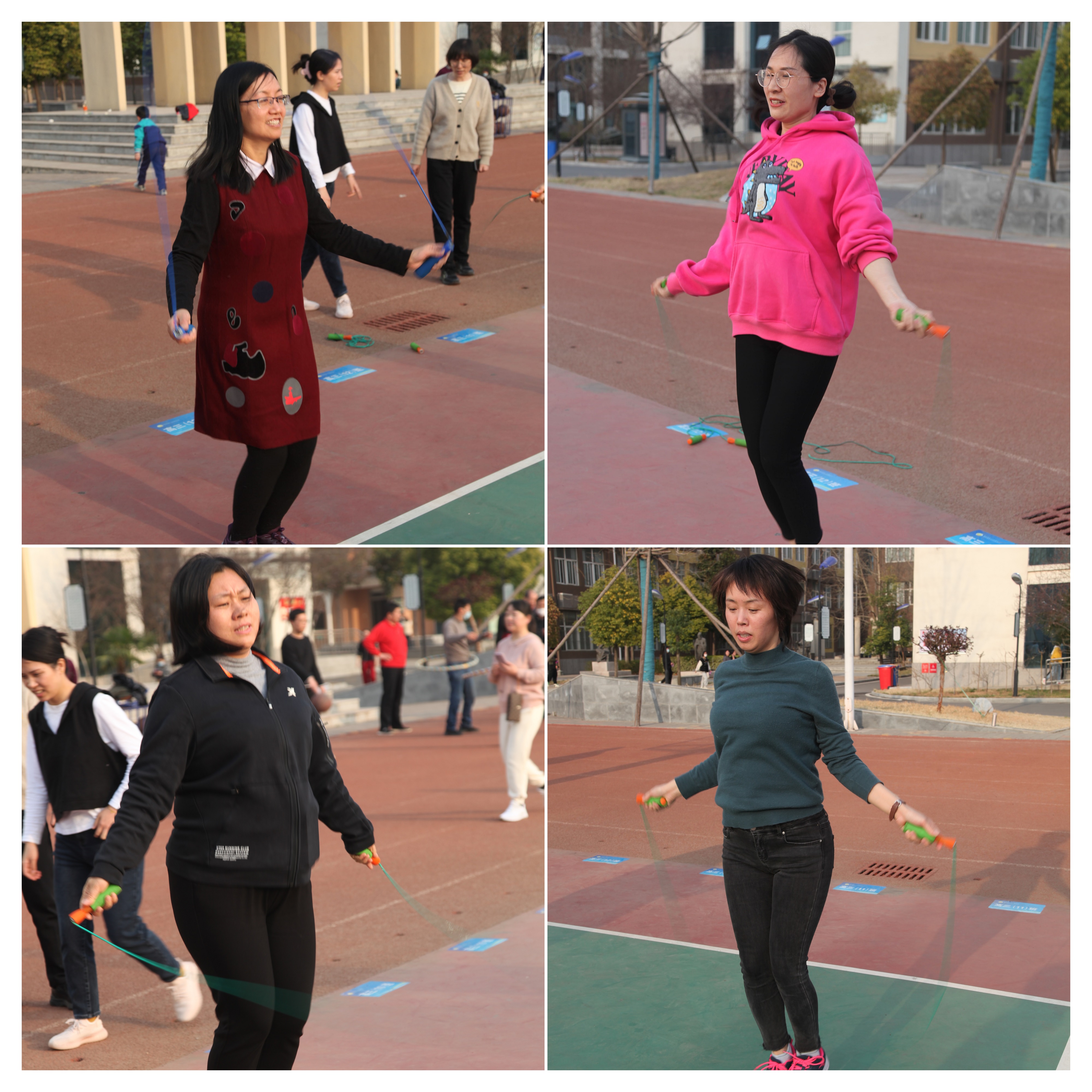学校精心策划了一分钟跳绳、转呼啦圈、托乒乓球50米折返跑、踢毽子、快速运篮球等多项趣味运动项目。选择呼啦圈比赛项目的老师们扭动着灵活的腰肢,用身体的协调性、灵活性和耐力,让七彩的呼啦圈随着身体的摇摆轻盈地转动。每位教师姿态各异,洋溢着活力,场外的观众也为选手们鼓劲助威。选择跳绳项目的老师们也是生龙活虎,绳子在脚下“嗖嗖”穿过。一个个腾空跳跃的身影,尽展巾帼风采。踢毽子是很多女教师的强项,伴随着比赛哨声响起,老师们动作灵敏、精神抖擞,脚尖上的五彩毽子,上下翻飞,轻盈飞舞,宛如一朵绚丽的春花。场边不时传来喝彩声、欢笑声,活动现场气氛热烈,也给初春的校园带来浓浓暖意。