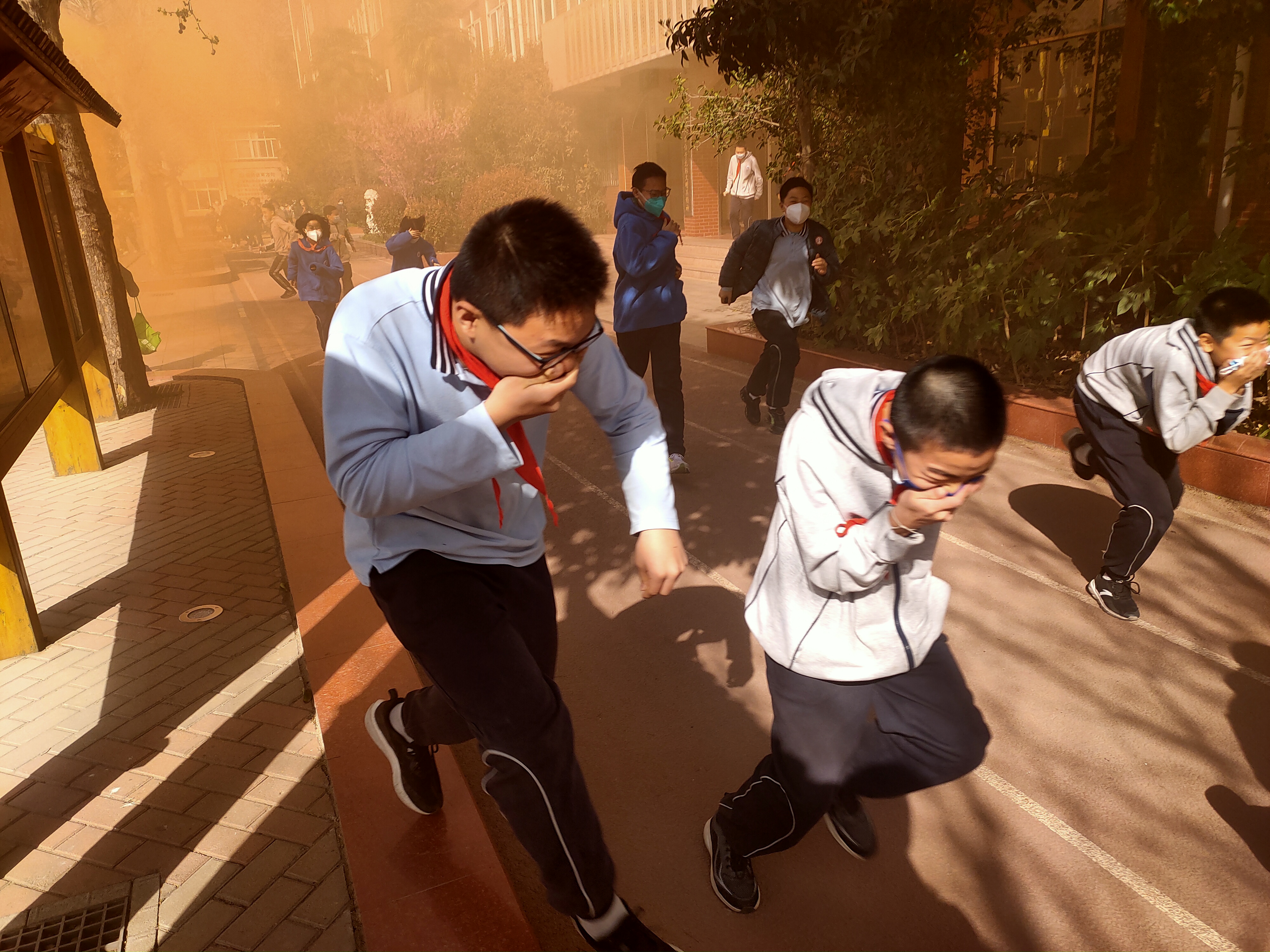 上午9:45,随着警报声的响起,全体师生停下一切活动,按照学校制定的演练活动方案,及时、迅速地进入“逃生”状态。安全教师迅速到位,在教学楼各楼层负责疏散。各班班主任立即组织学生有序疏散撤离,避免人群拥堵。学生们捂住鼻子和嘴巴,弯着腰,按疏散路线有秩序地迅速撤离,到达指定地点汇合。整个逃生过程当中,学生基本做到在烟雾笼罩的环境中快速行走,先到先下,无强行冲、挤行为,动作迅速,不吵闹,不慌乱。学生到达各班指定地点后,班长们立即清点人数并向安全员汇报结果。