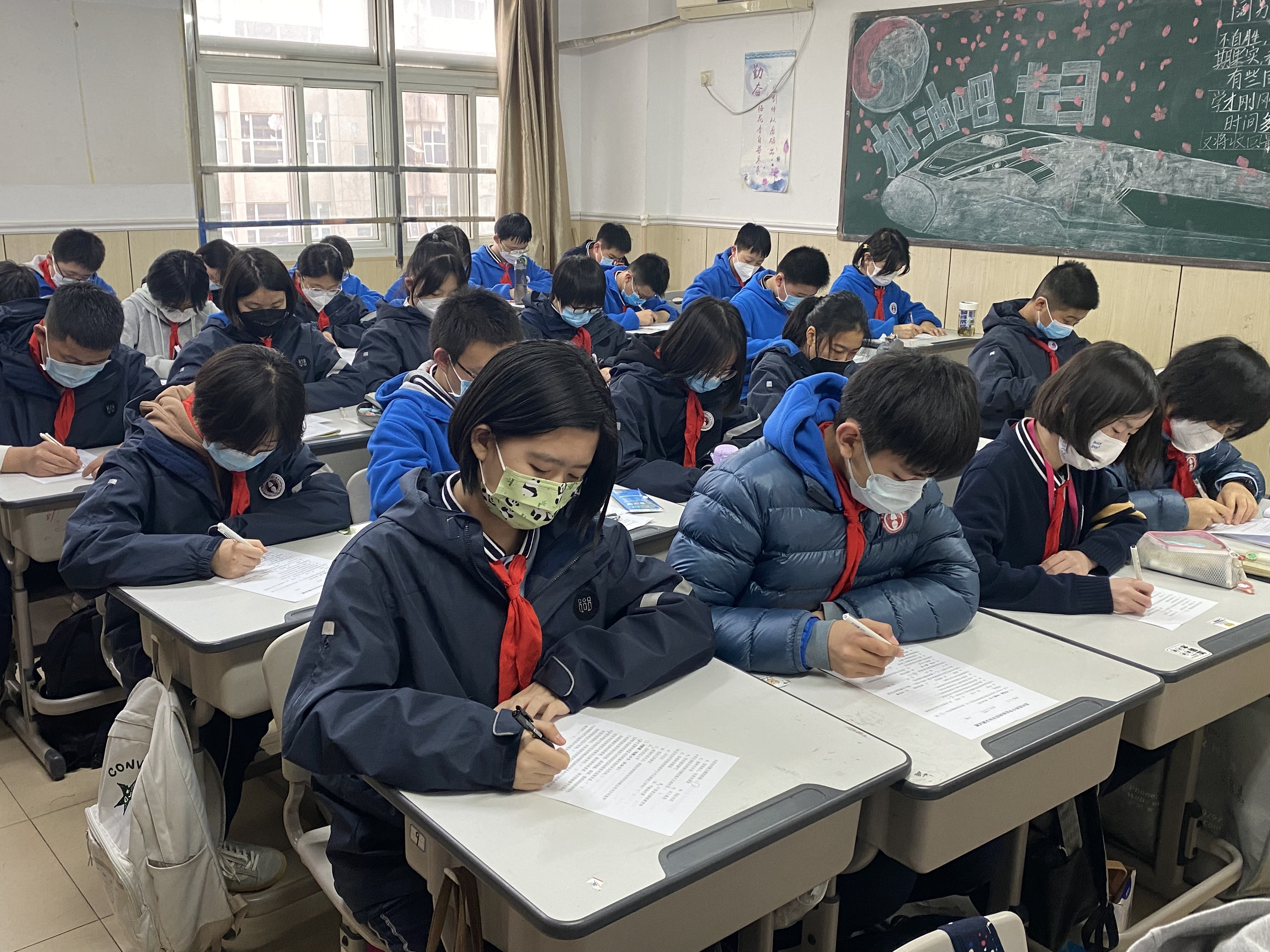 同学们认真作答健康测试题