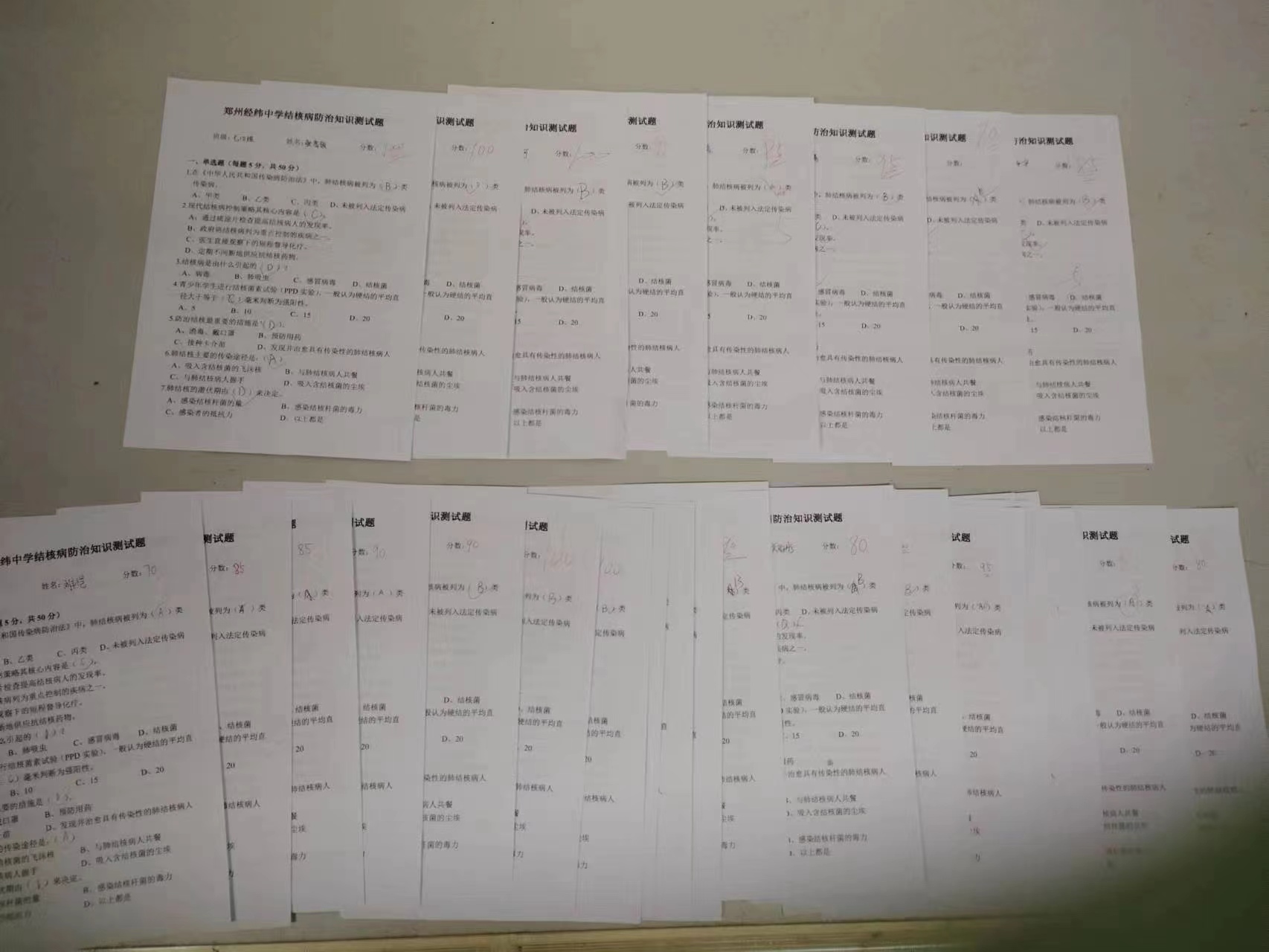 为了检测同学们结核病防治知识的掌握情况,校医张霞老师精心设计了测试题,涉及《中华人民共和国传染病防治法》、结核病的引起、肺结核的传染途径、预防措施等内容。同学们纷纷表示,他们通过这节班会课的学习,了解了肺结核的主要症状:咳嗽、咳痰、胸痛及呼吸困难、疲劳乏力、低热盗汗等,知道了学生预防结核病的关键措施:教室通风换气、加强体育锻炼、不随地吐痰;懂得了结核并不可怕,只要重视预防工作,做到早发现、早隔离、早诊断、早治疗,就可以有效地阻断肺结核的流行和传播,有效防“病”未然。