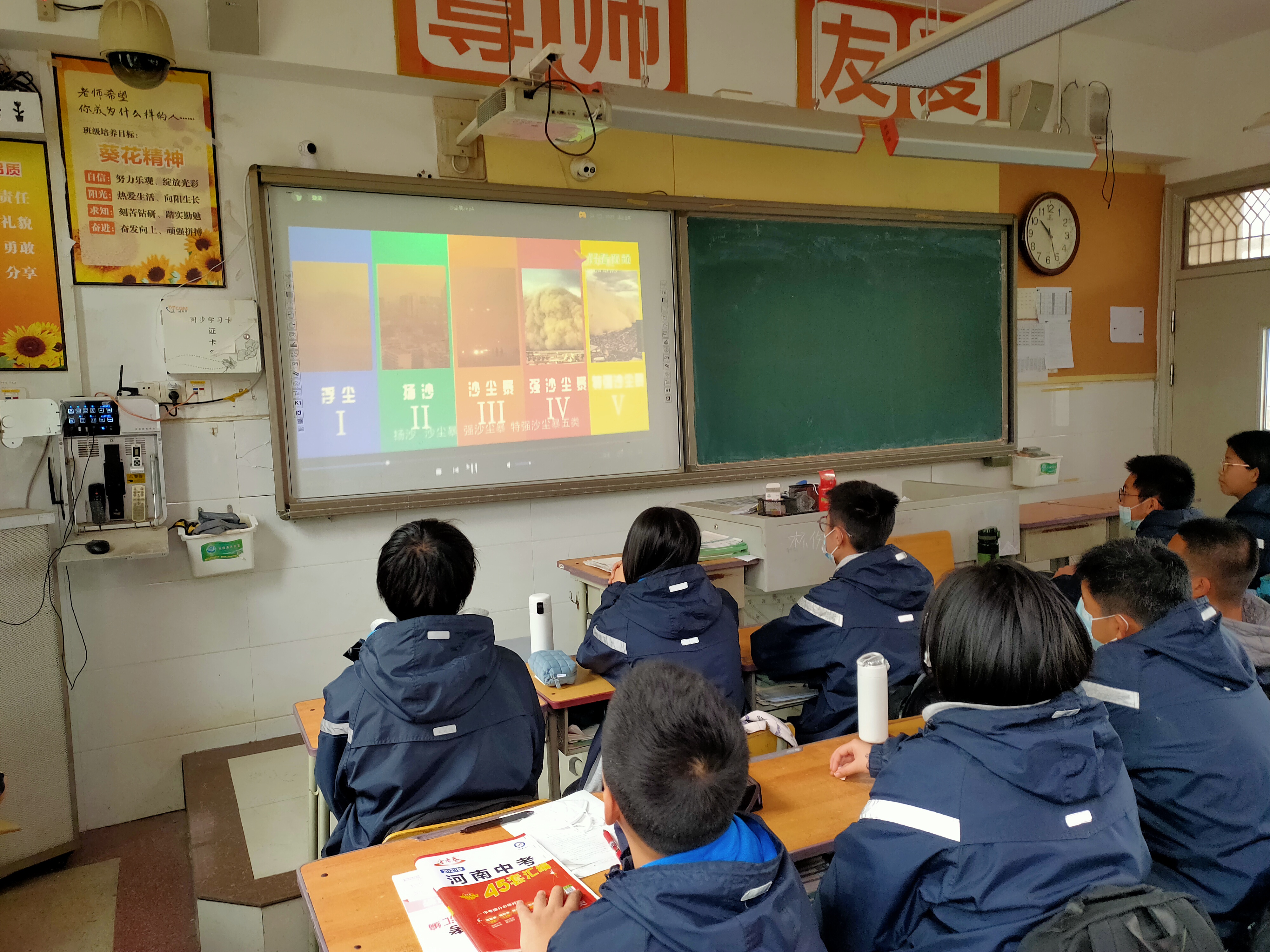 “未经核实的气象信息能够转发吗?”“雷电灾害如何预防”“人工影响天气如何做到的”“气象灾害预警级别有哪些”,在教室里,围绕今年世界气象日主题“天气气候水,代代向未来”,各班开展了气象科普班会,讲解了气象观测基础知识、常见气象灾害防御应对措施、人工影响天气原理等气象知识。