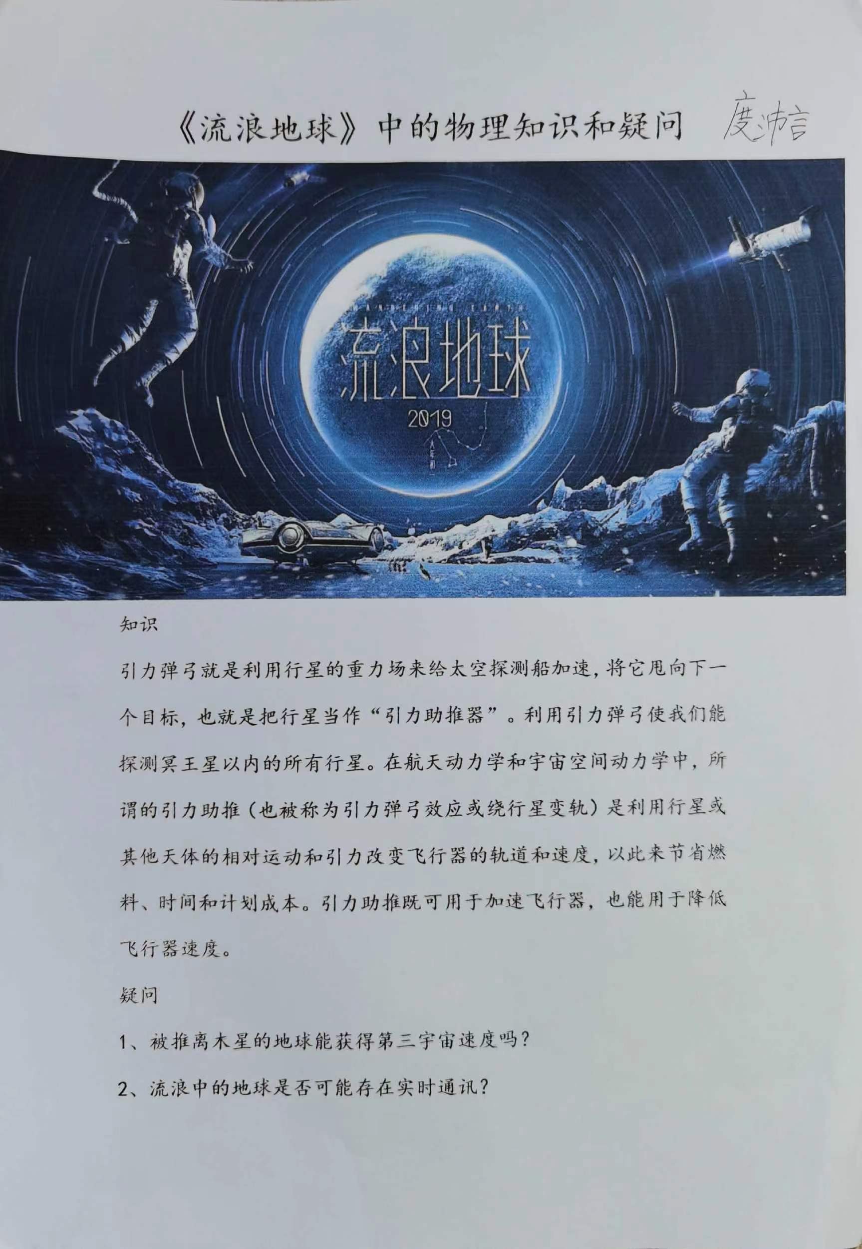 看电影也可以是作业?是的!不少学生观看了《流浪地球2》,被片中层出不穷的硬科技所震撼,讨论“太空电梯”的可行性。《三体》《流浪地球》等科幻故事给学生的思维装上了想象的翅膀,充分锻炼学生的创造力和逻辑思维能力,也激发了学生对知识的认识和向往。
