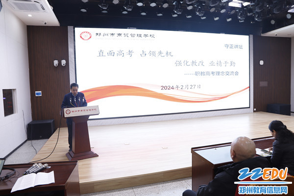 活动中,学校教务处主任贾俊涛对本次召开的职教高考理念交流会进行了总结性发言,贾俊涛表示,职教高考不仅仅是一次考试,更是对学生综合素质的检验。因此,我们在做好教育教学工作的同时,也要发挥郑州市商贸管理学校的学校特色,在学校守正德育体系的大框架下,把握好学生的心理健康发展,注重思政元素的融入,充分提升学生的公民素质、学习能力、和交流合作能力等多方面素质水平,进而为学生的升学保驾护航。