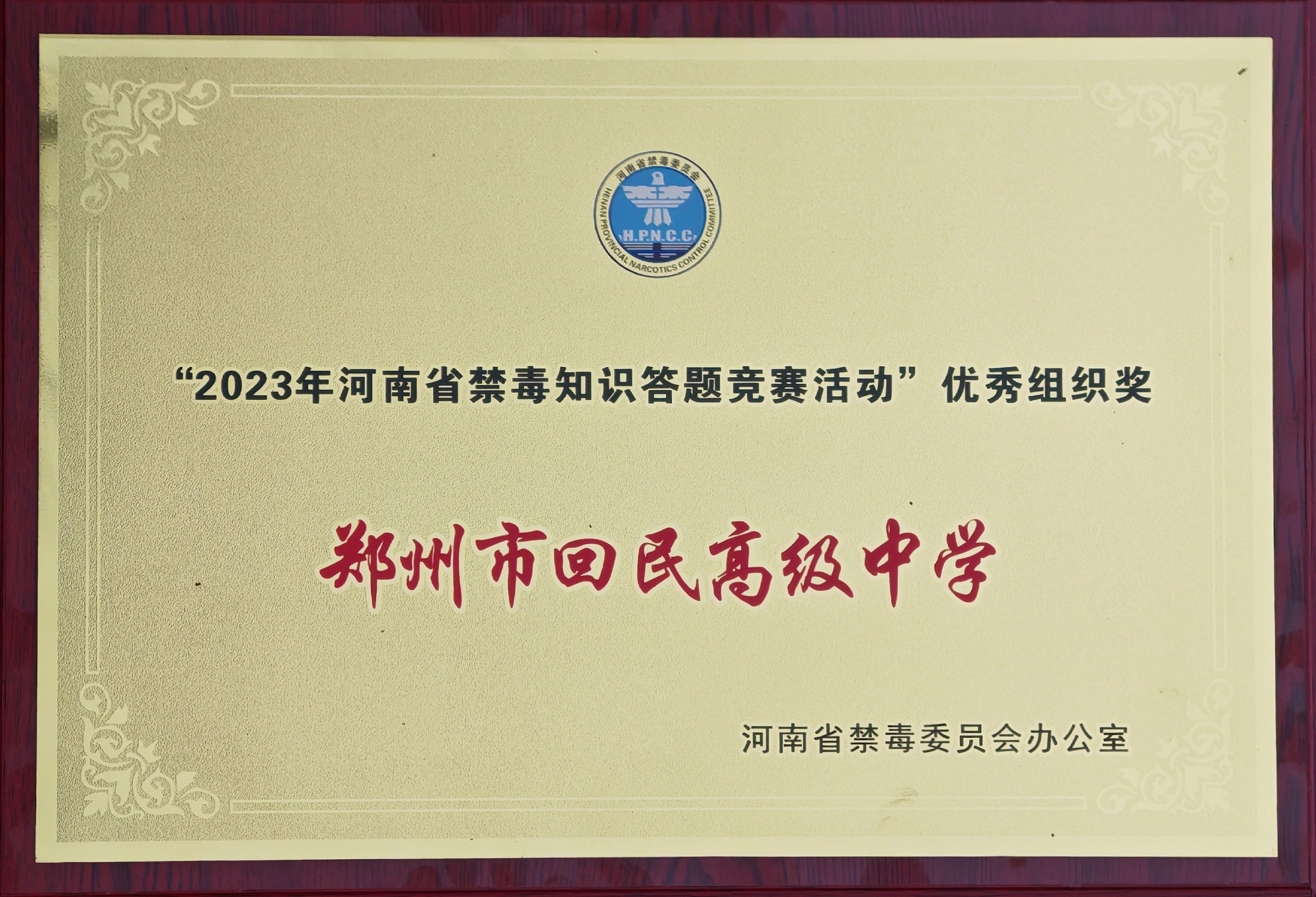 2月29日,郑州市回民高级中学喜获捷报,学校在2023年度禁毒知识答题竞赛活动中荣获优秀组织奖。