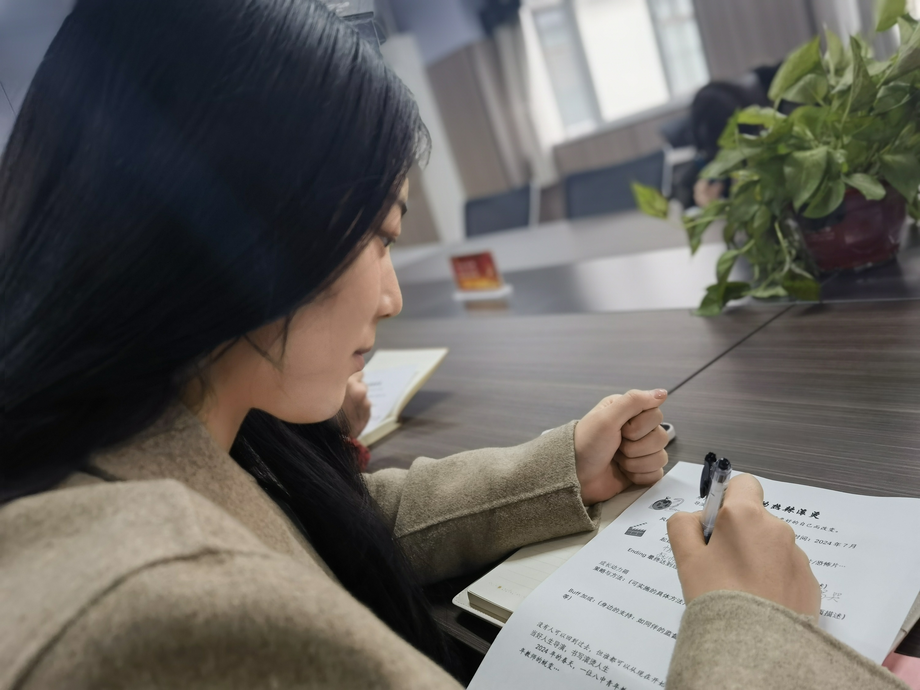 站在新学期的起点,郑州八中新校区教学负责人孟光明结合《热辣滚烫》中贾玲对更好自我的追逐,引领青年教师趣味转化目标设定,以给自己拍电影的方式,设定自我成长目标,并在剧本的充盈中,让大家找到支持性力量,看到自己的勇气,演绎出属于自己的热辣滚烫。