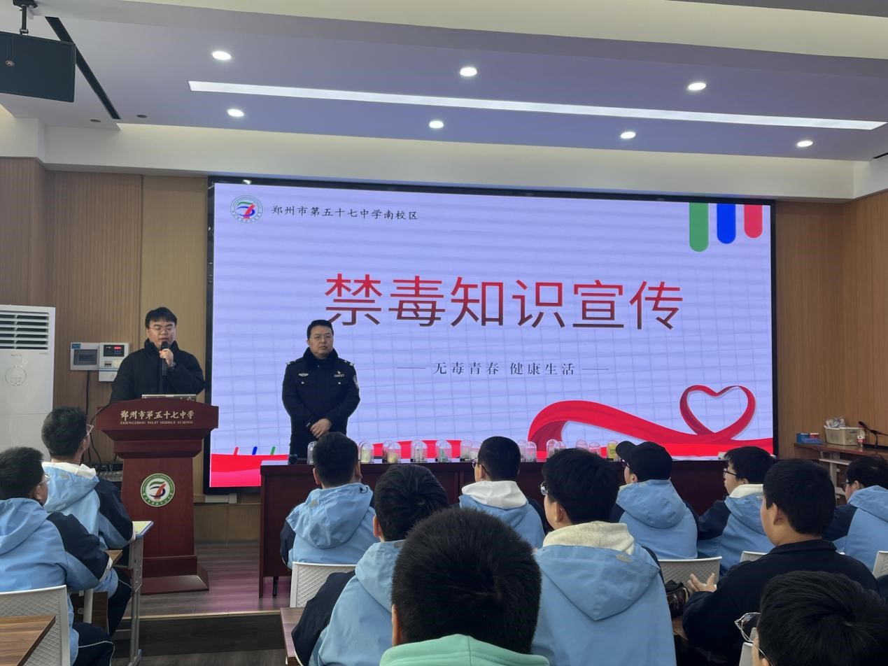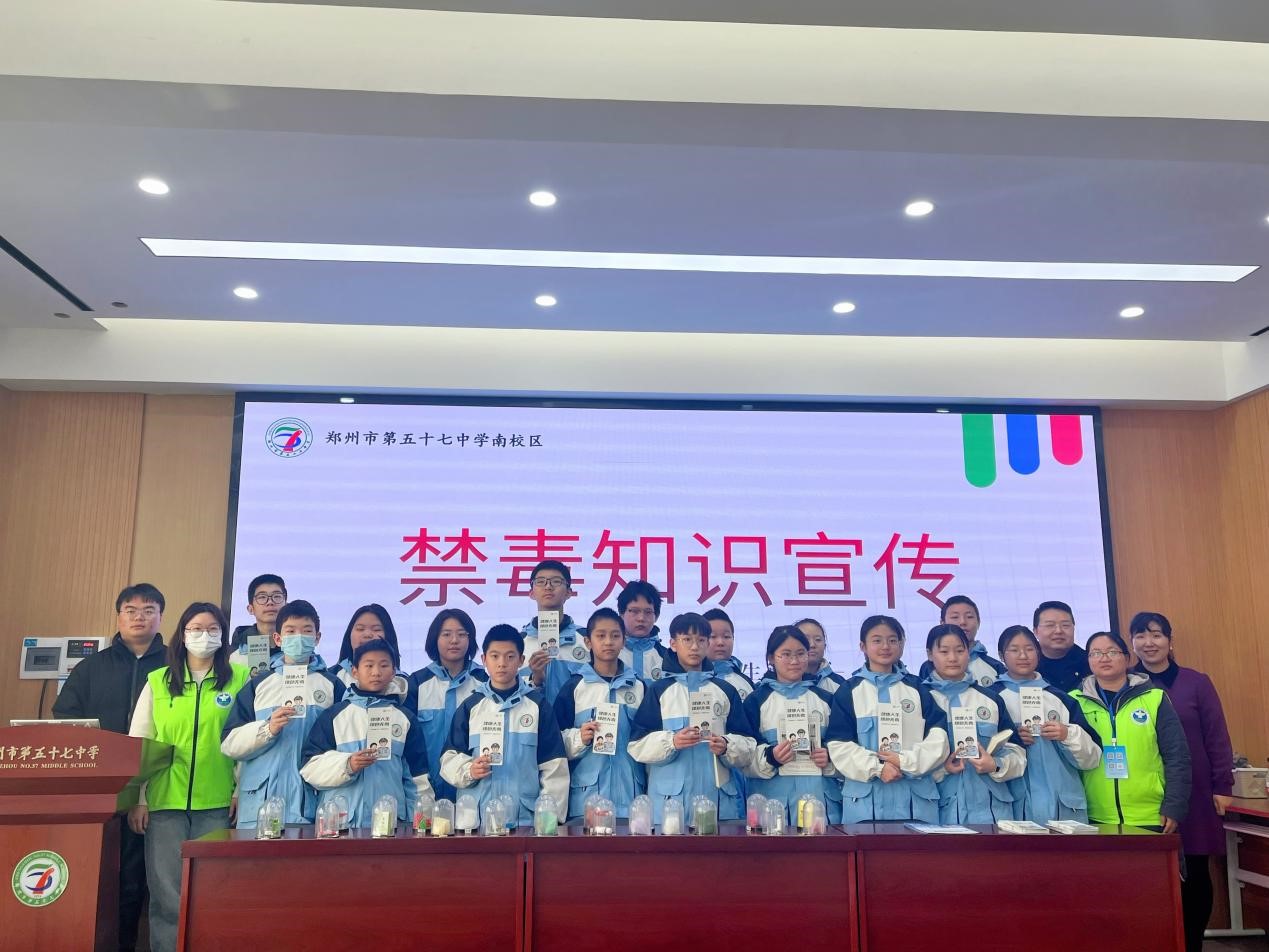 为进一步增强青少年的禁毒意识,提高识毒、防毒、拒毒能力,郑州57中南校区于3月8日开展一场别开生面的禁毒宣传进校园活动。此次活动旨在通过生动有趣的宣传形式,向广大师生传递禁毒知识,引导青少年远离毒品,树立健康向上的生活态度。