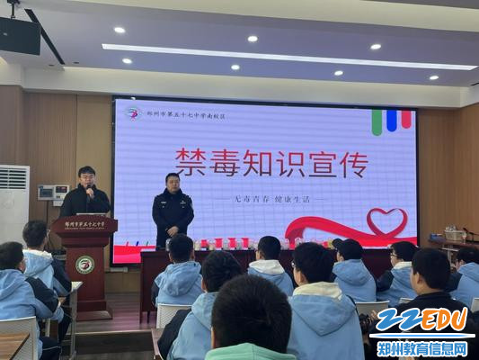 活动现场,郑州57中南校区邀请郑州市禁毒办专业人员担任讲师,为全体师生带来一场精彩的禁毒知识讲座。讲座中,他运用详实的案例、生动的语言,深入浅出地讲解毒品的种类、危害及如何防范毒品侵害。同时,他还通过互动问答、模拟场景等形式,引导学生们积极参与,深入思考,加深对禁毒知识的理解和记忆。