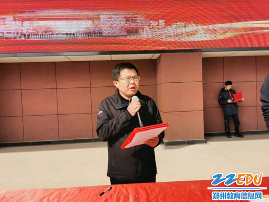 升旗仪式结束后,郑州八中政教处副主任甘铁权对2025届国旗班队员的辛苦付出、优良作风、深厚情谊表示认可,同时,也表达了对退队队员的真诚祝福和殷切期望,他说:“虽然已经退队,希望你们继续秉承国旗班热烈的爱国之情,勇毅担当之姿,不惧困难、不畏辛苦的精神,将国旗班精神发扬光大。”