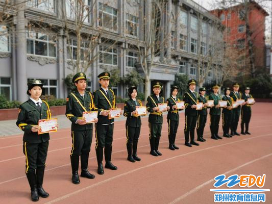 随后,校领导为国旗护卫队成员颁发荣誉证书,并合影留念。