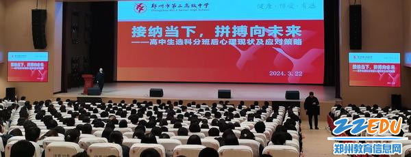 郑州市第二高级中学举行讲座,对学生选科走班后的心理困惑进行疏解。